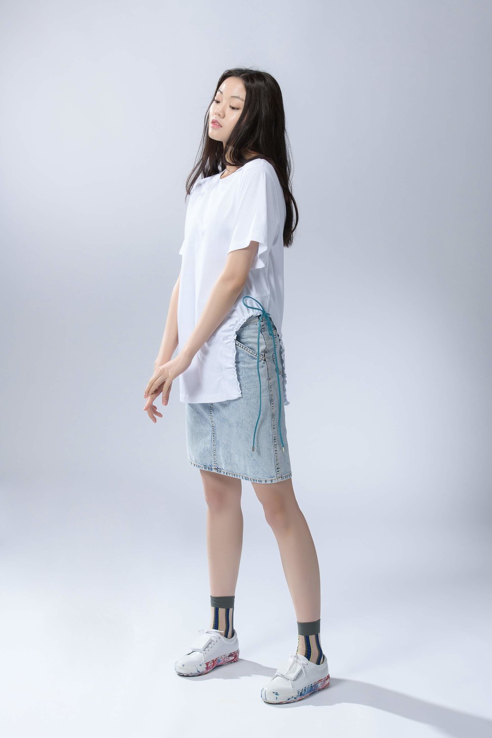 - 한쪽옆선에 배색 코튼과 스트링 티테일로 유니크함을 주었습니다.