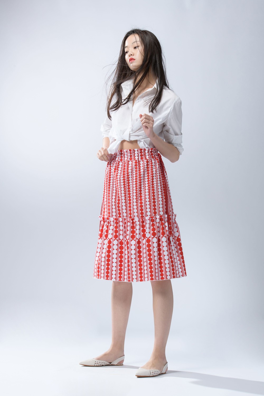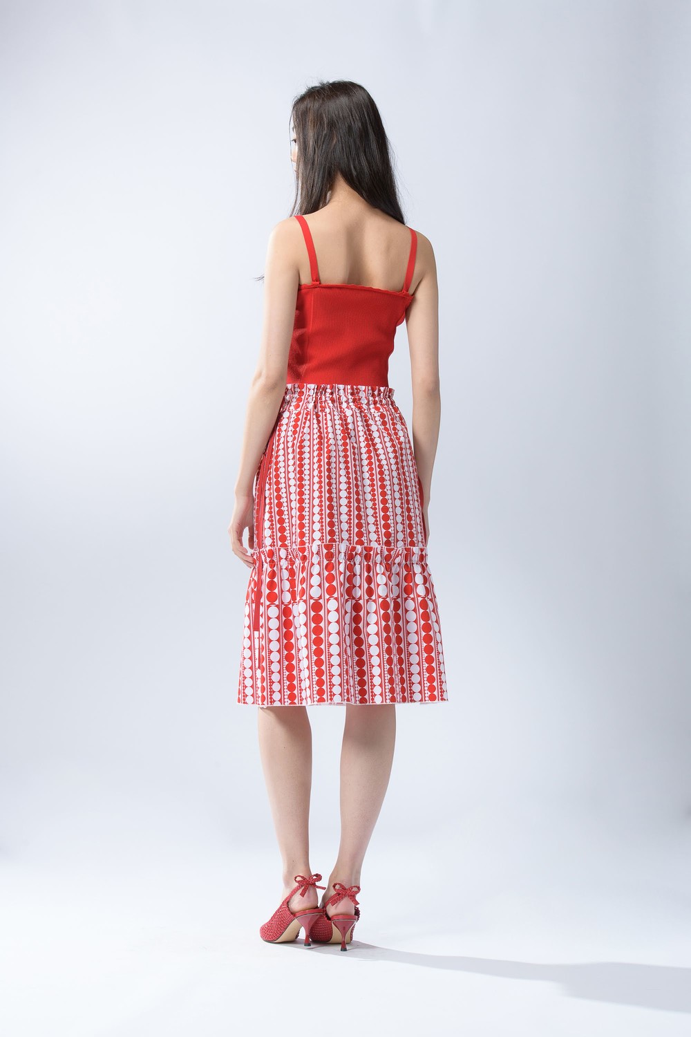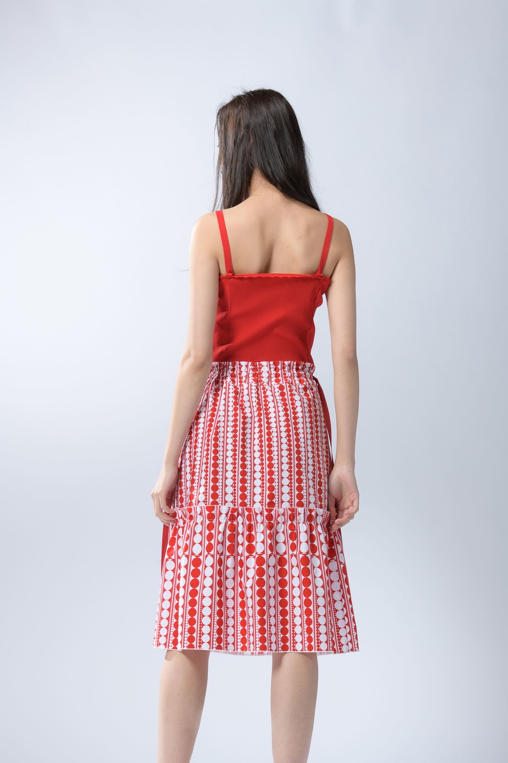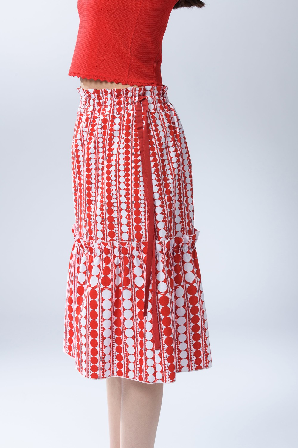 RIBBON STRING FRILL DOT SKIRT