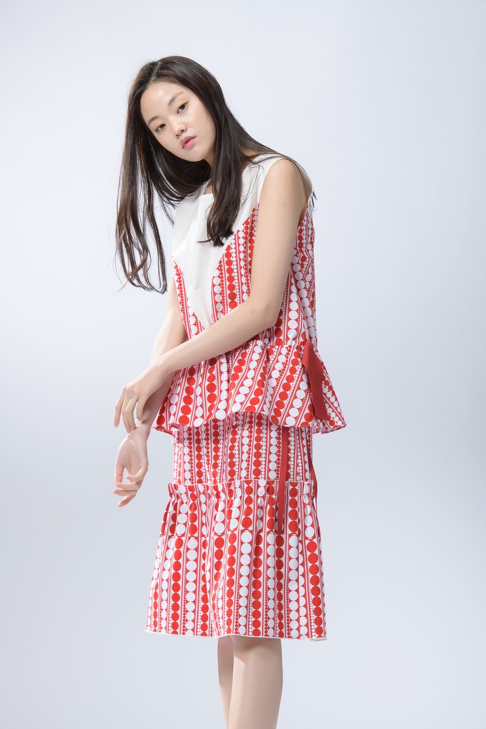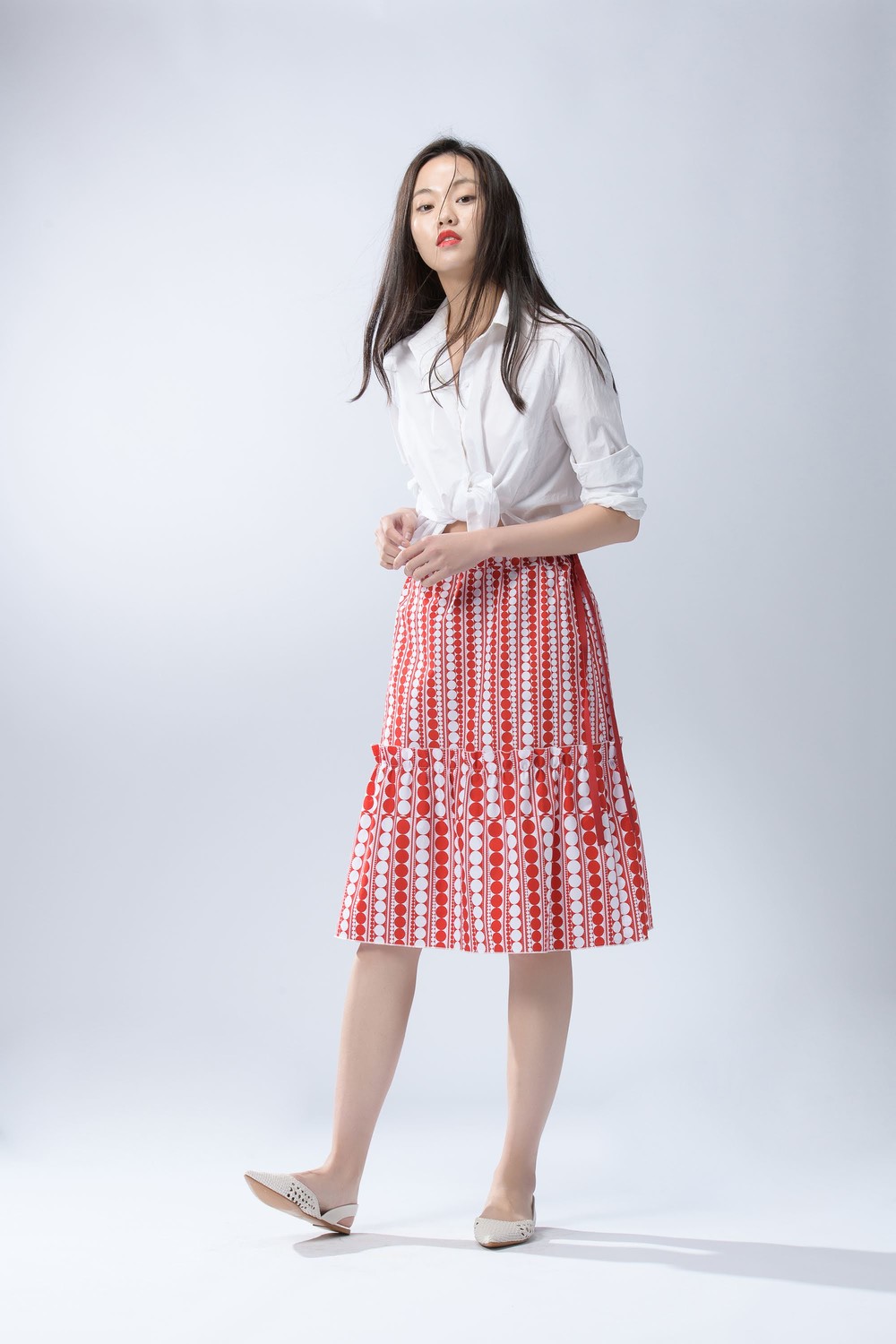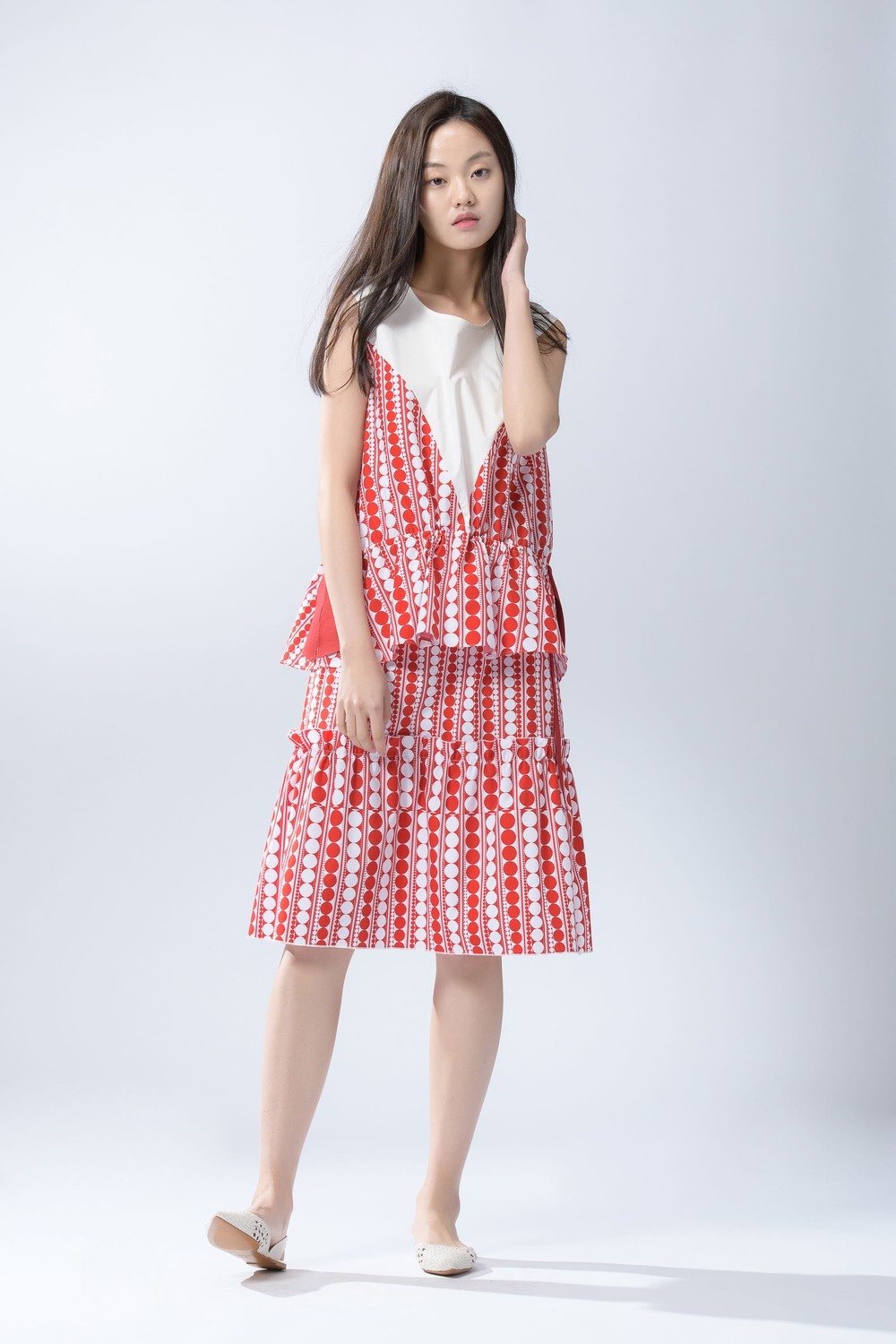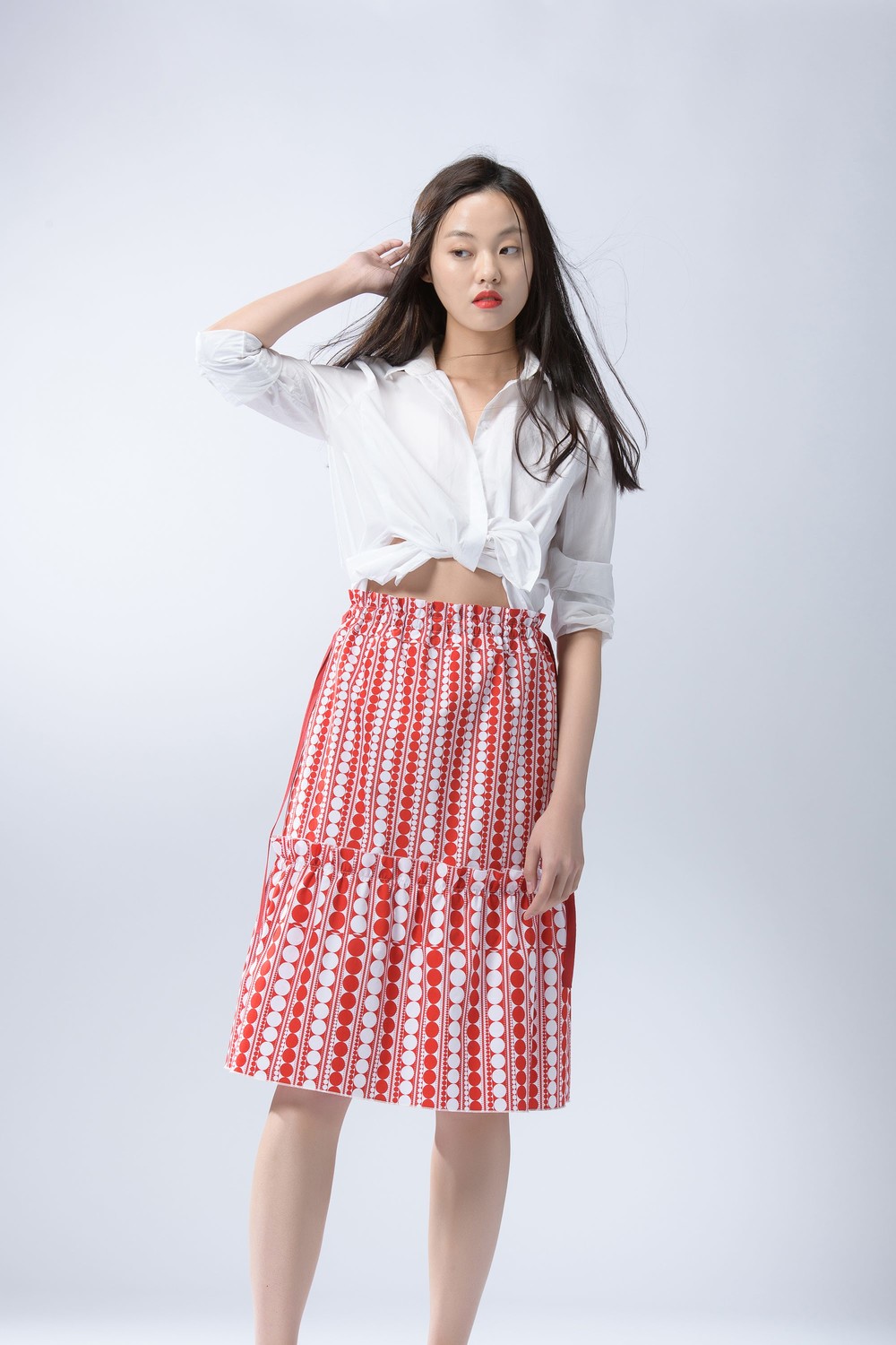 - 같은 소재의 탑과 함께 착용하여 원피스로도 연출해보세요.
