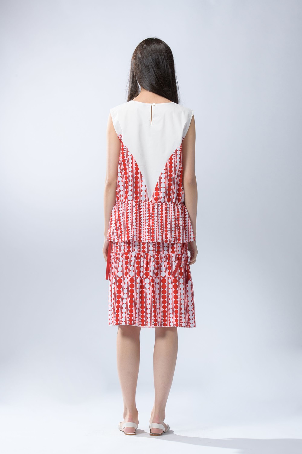 - 코튼100% 원단에 불규칙한 배열의 도뜨프린트가 나염된 프린트 소재로 제작되었습니다.