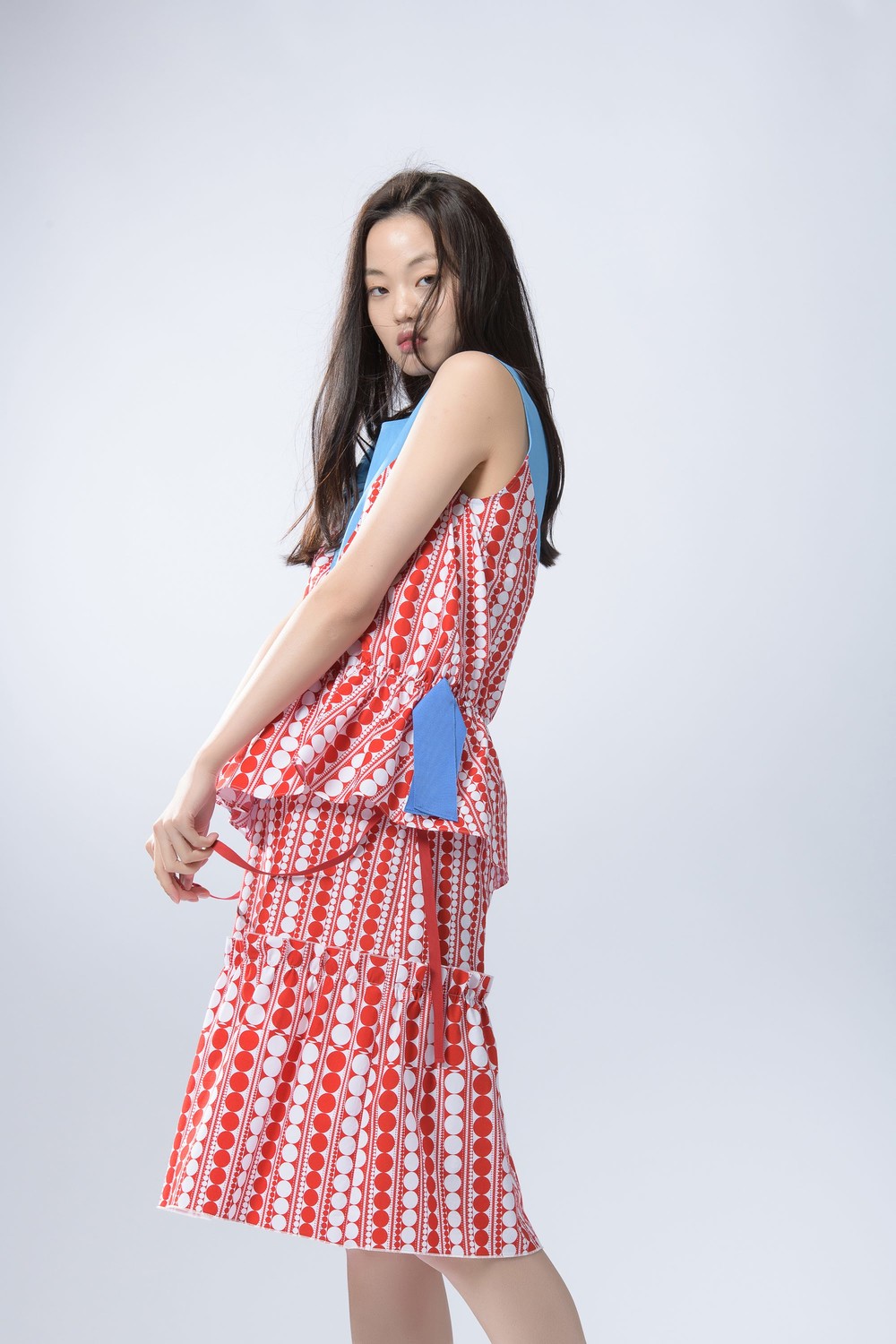 - 같은 소재의 스커트와 함께 착용하여 원피스로도 연출해보세요.