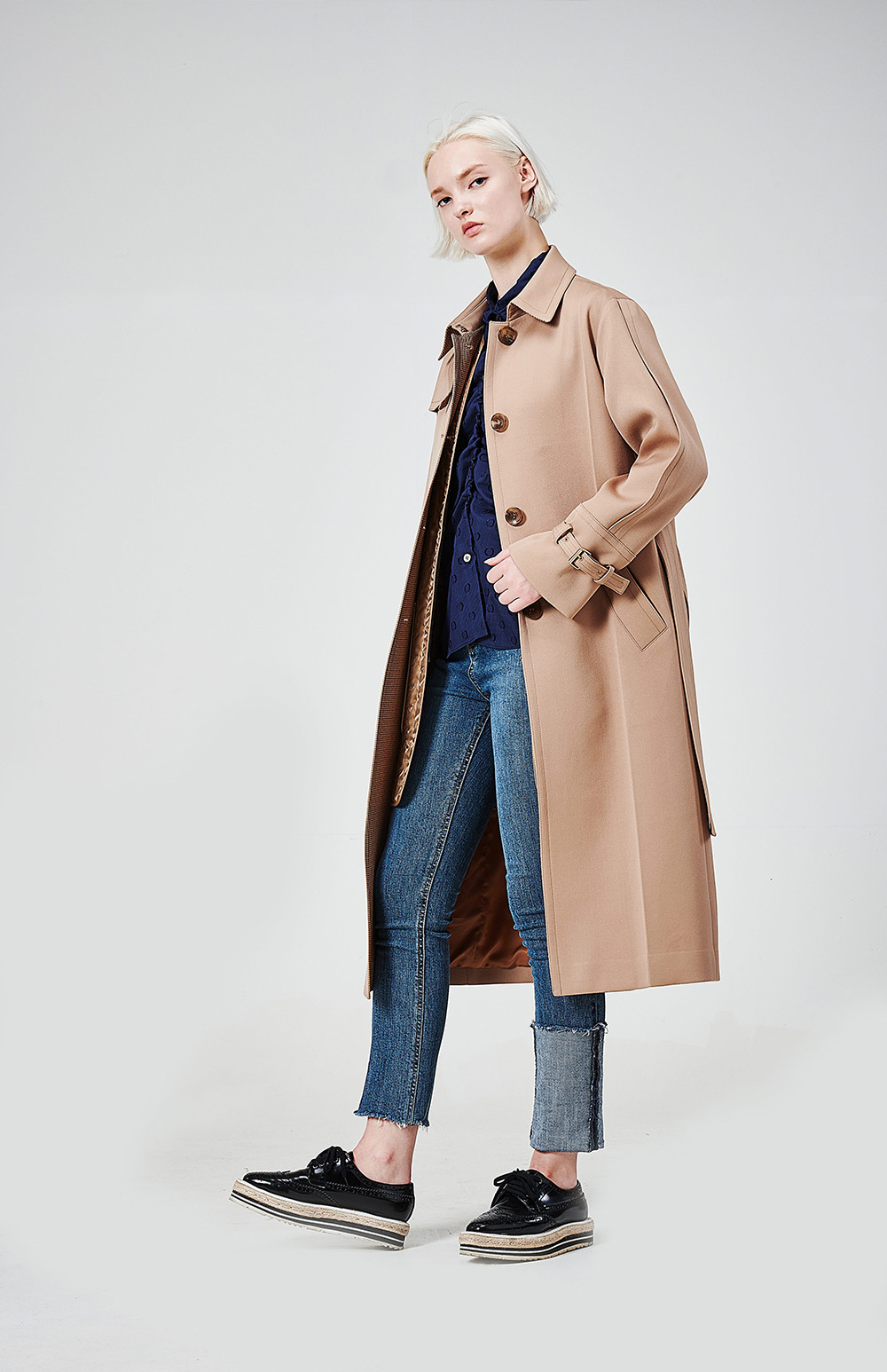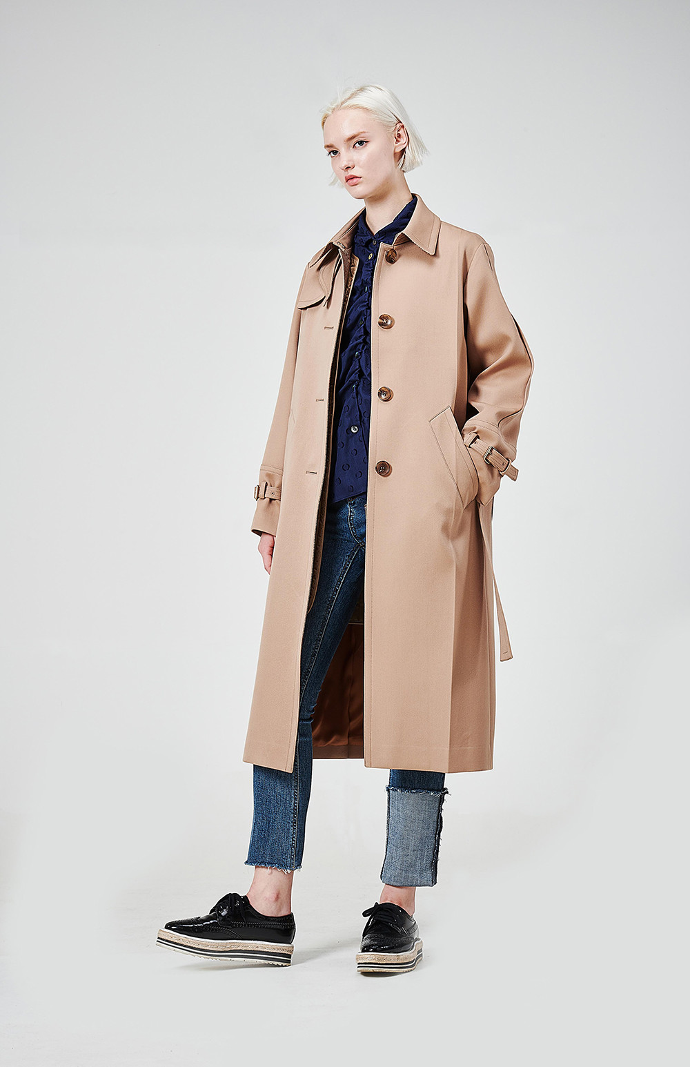 (트랜치의 앞뒤 주름은 처음 출고시에만 잡혀져 있으며 드라이시 펴지는 디테일이니 유념해 주세요)