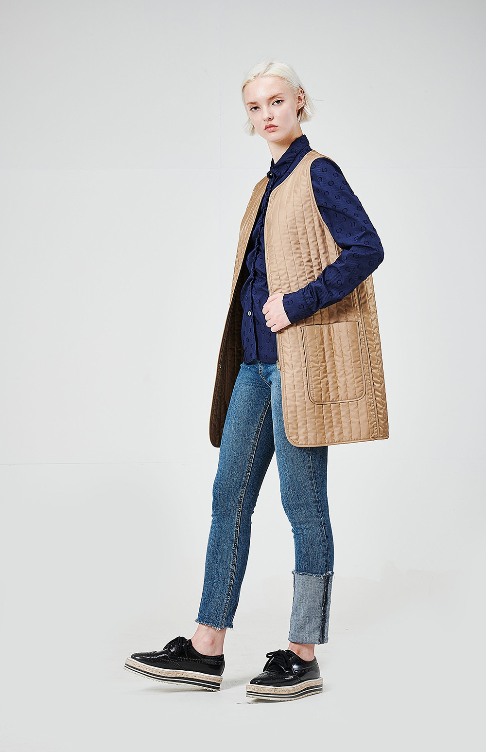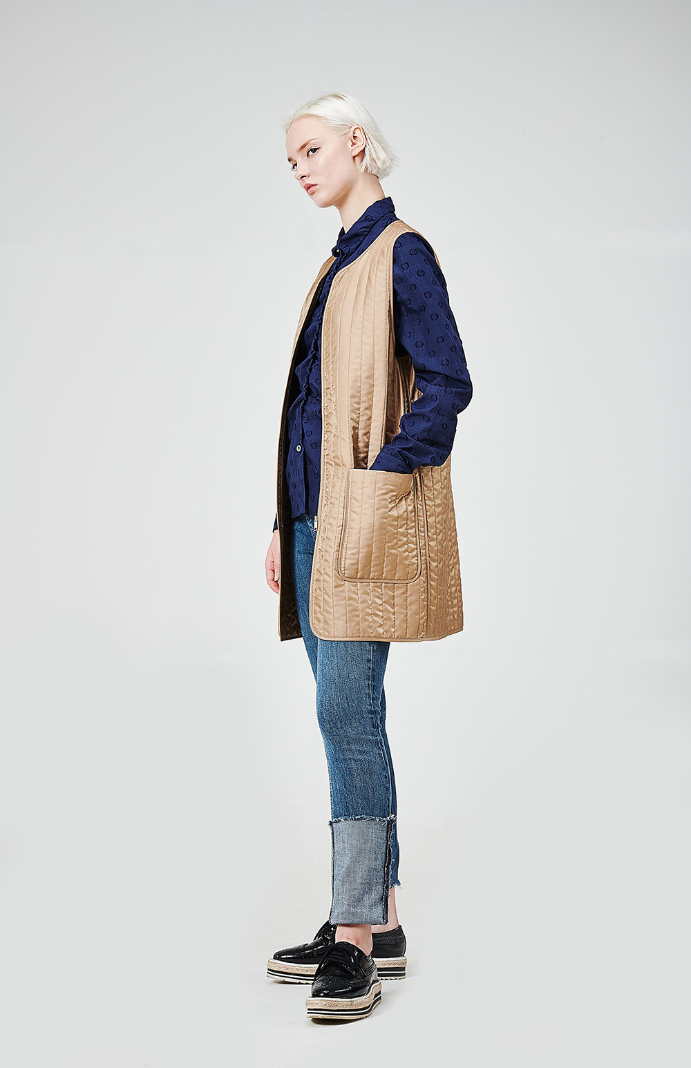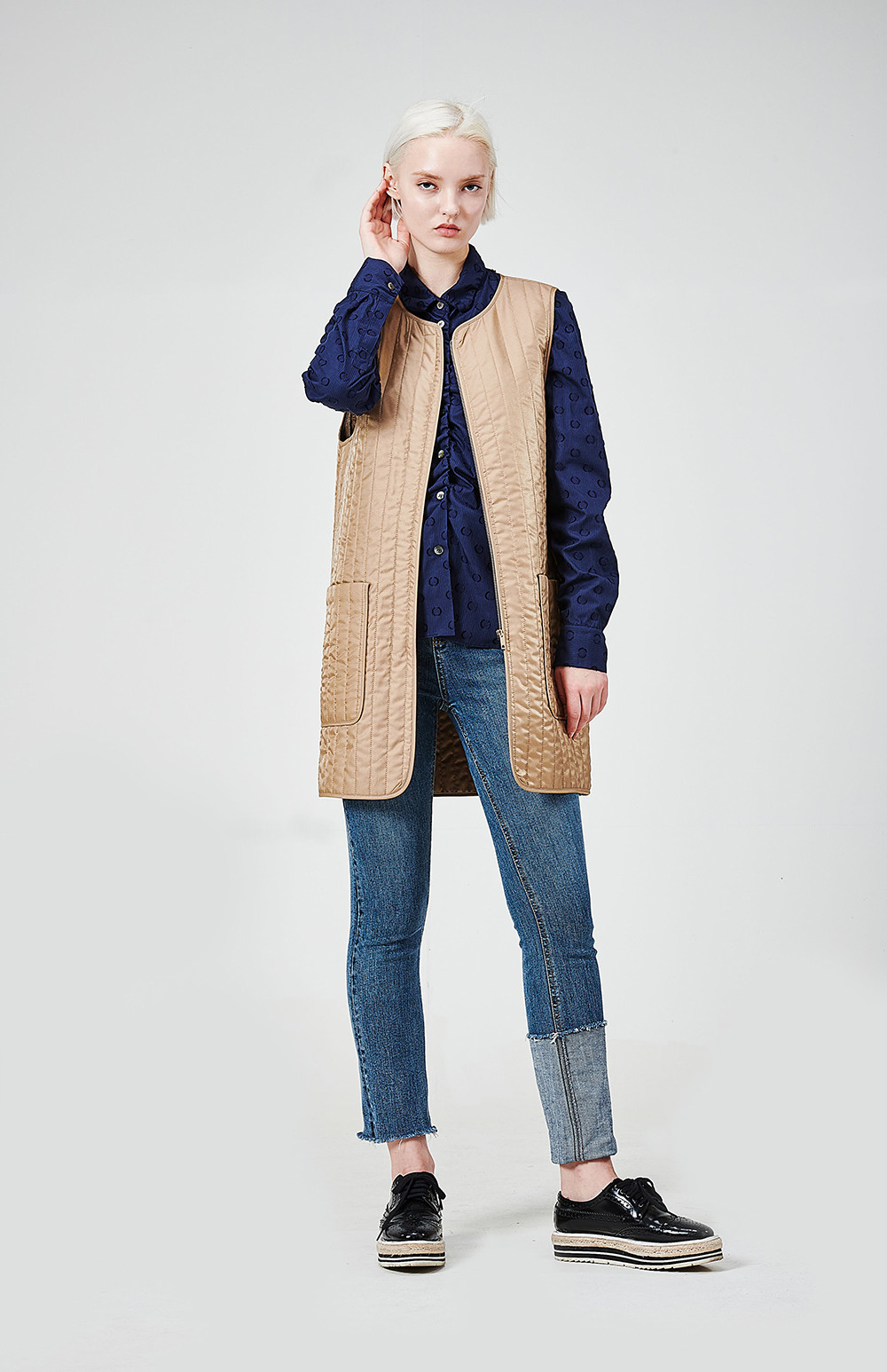 - 고급스런 이태리 수입소재의 패딩퀼팅 조끼가 포함되어 있는 제품입니다(다른 옷에도 코디하시어 활용하시기 좋습니다)