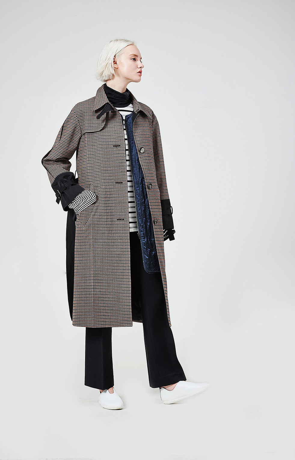 - 앞마이 안쪽과 소매부분에 배색소재를 사용하여 데일리한 느낌을 주었습니다