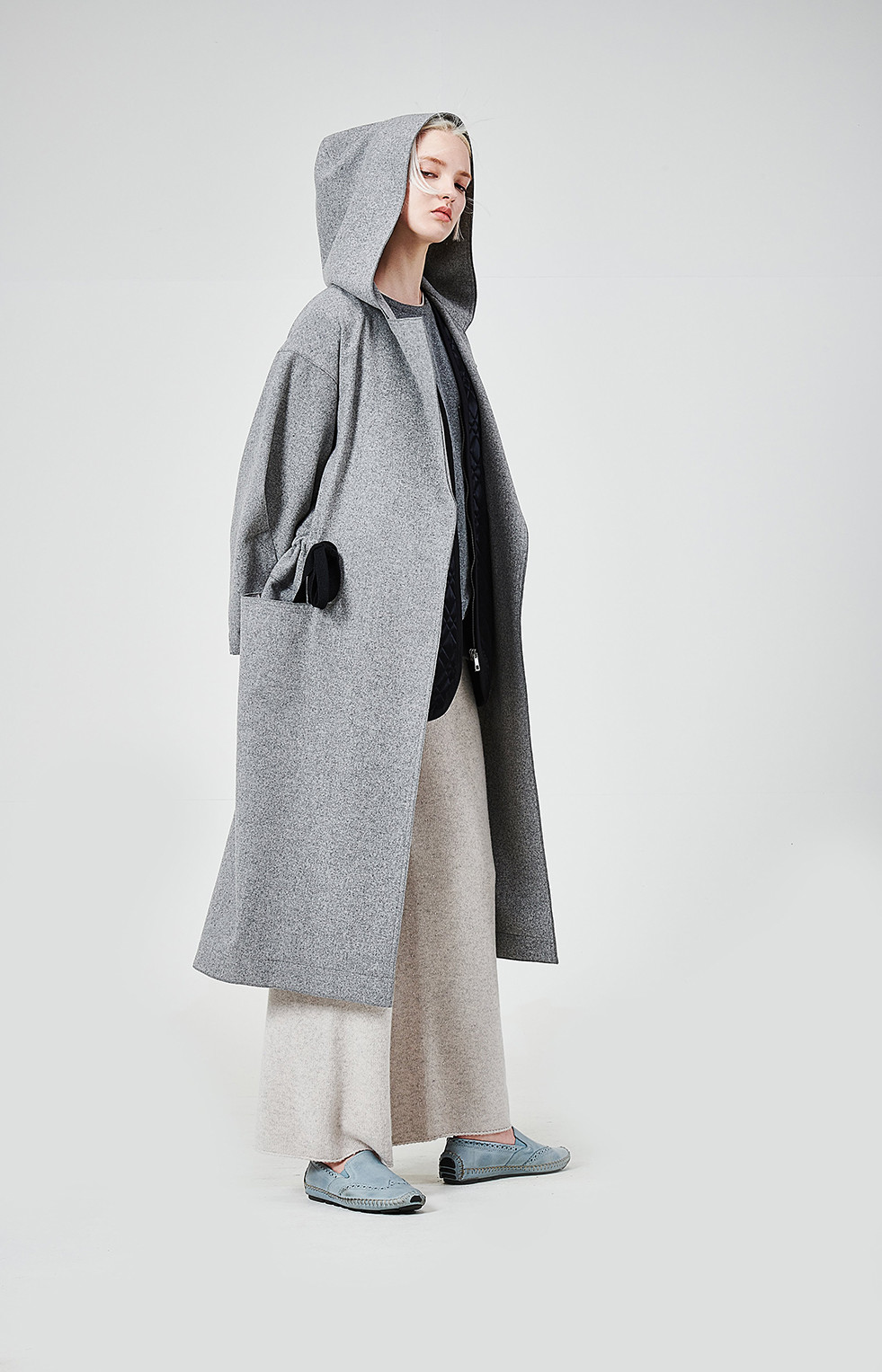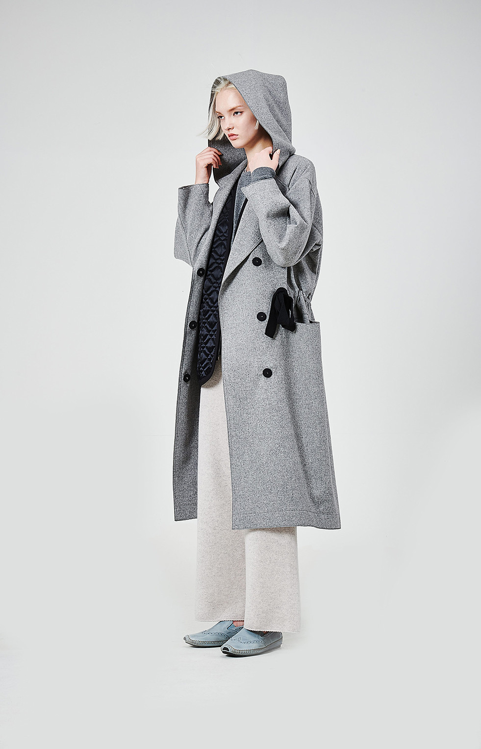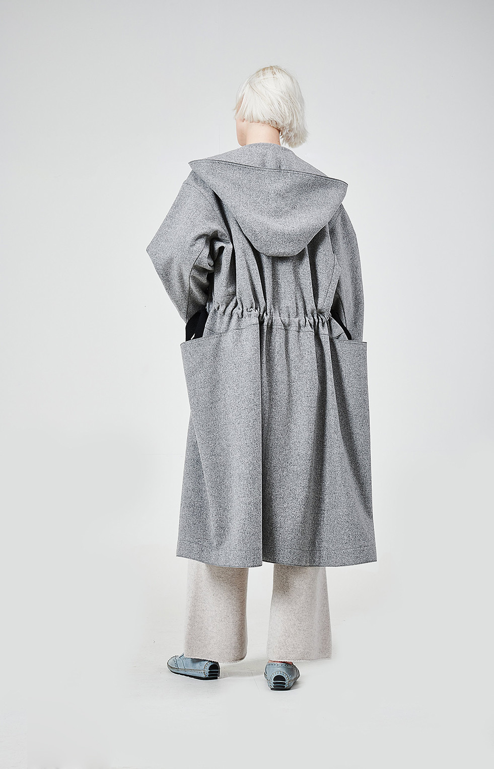 - 후드는 카라와 연결되어 너무 크지 않게 디자인 하였습니다