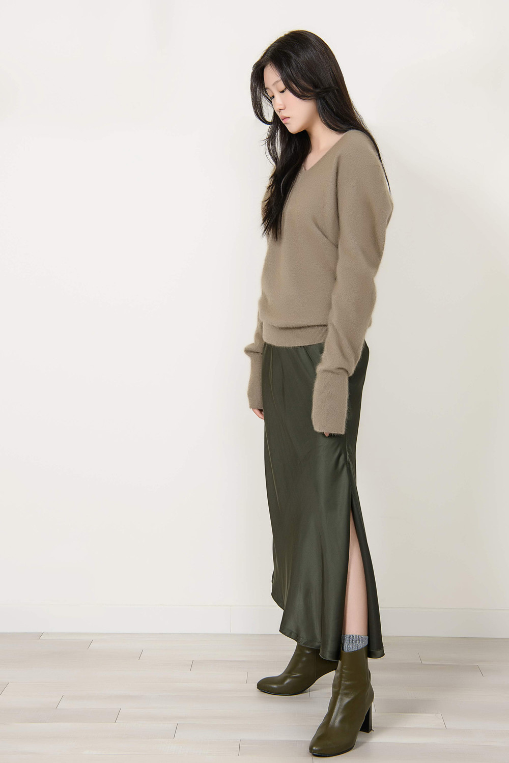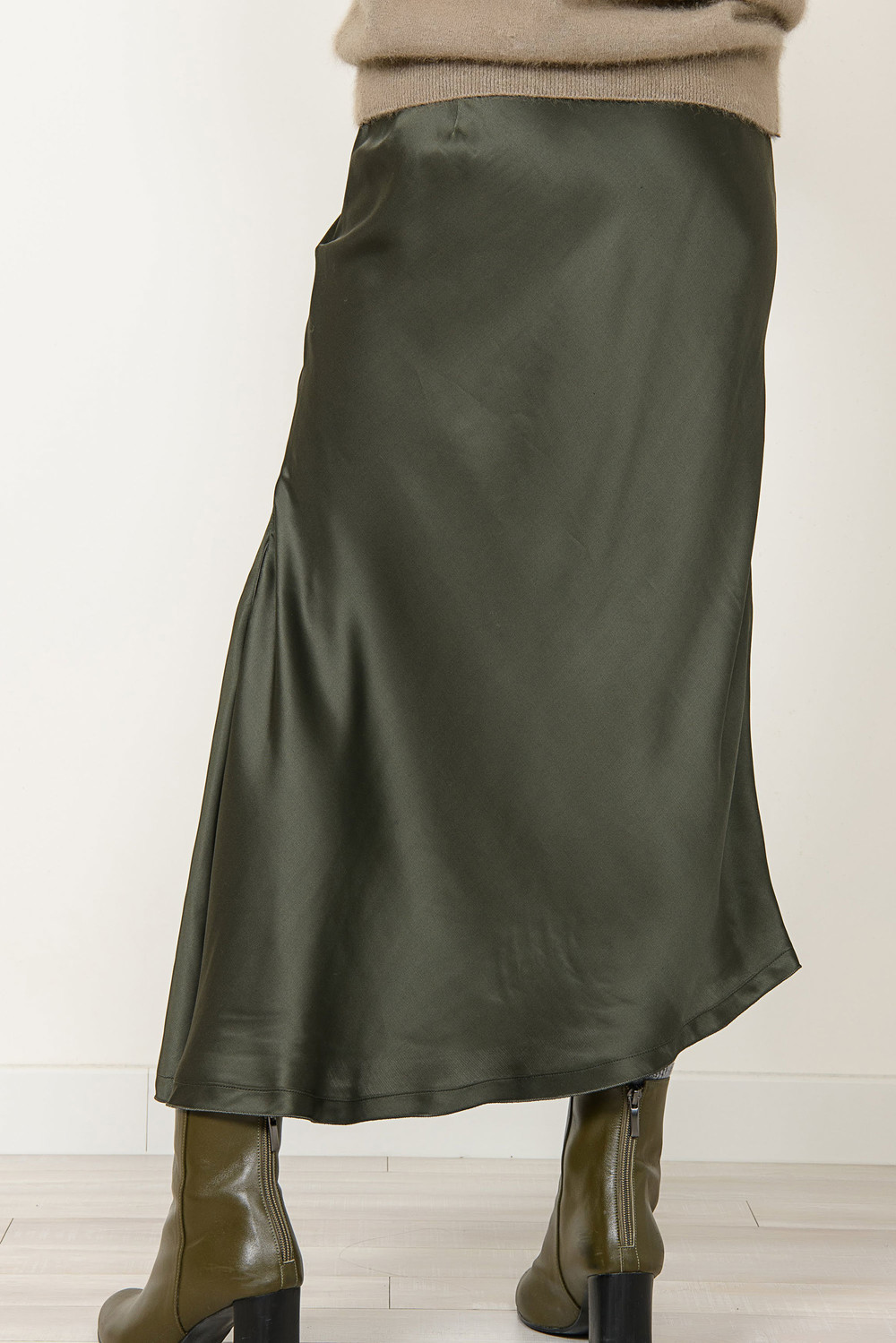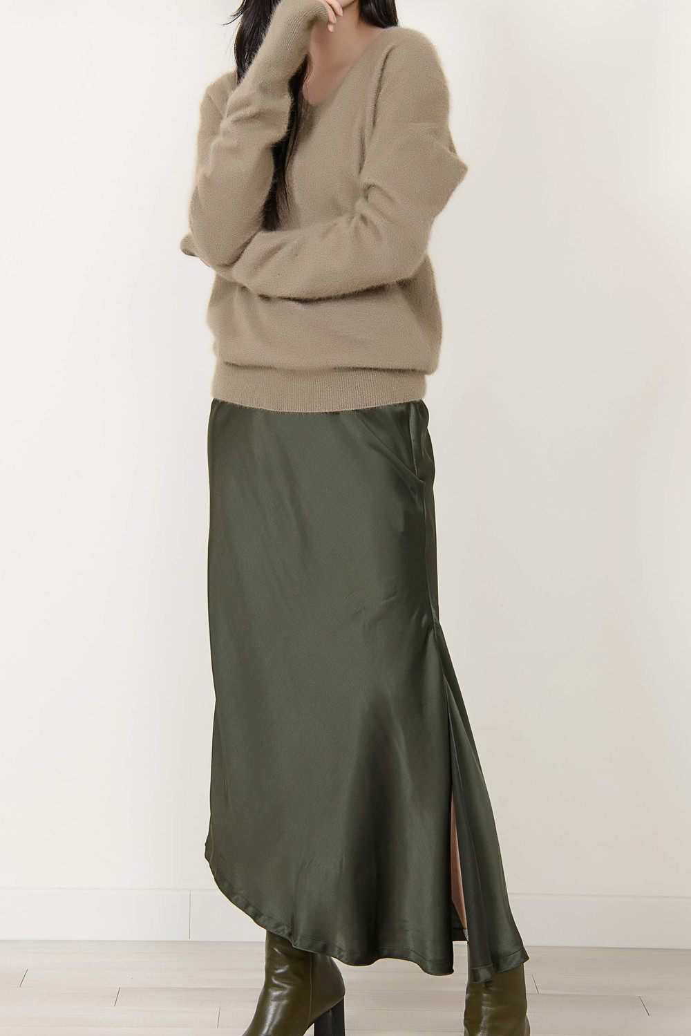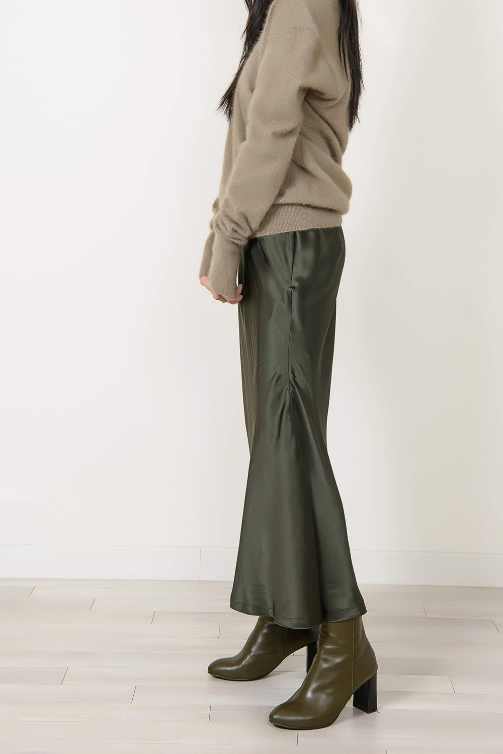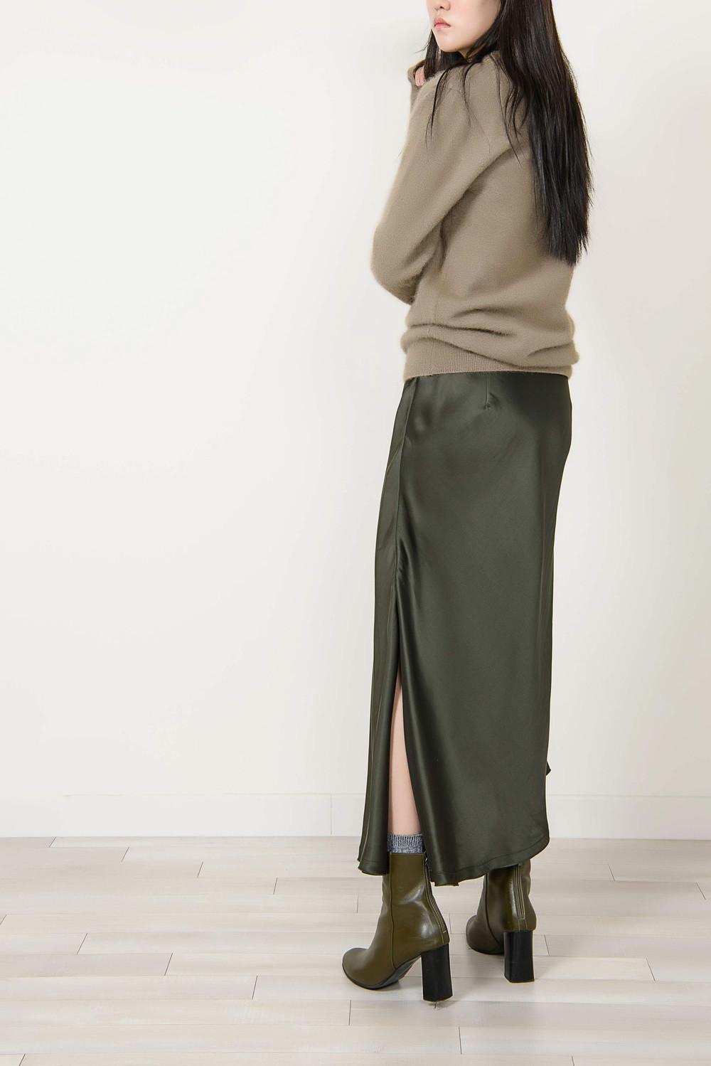 [wasda] UNBALANCE LONG SKIRT GREEN
