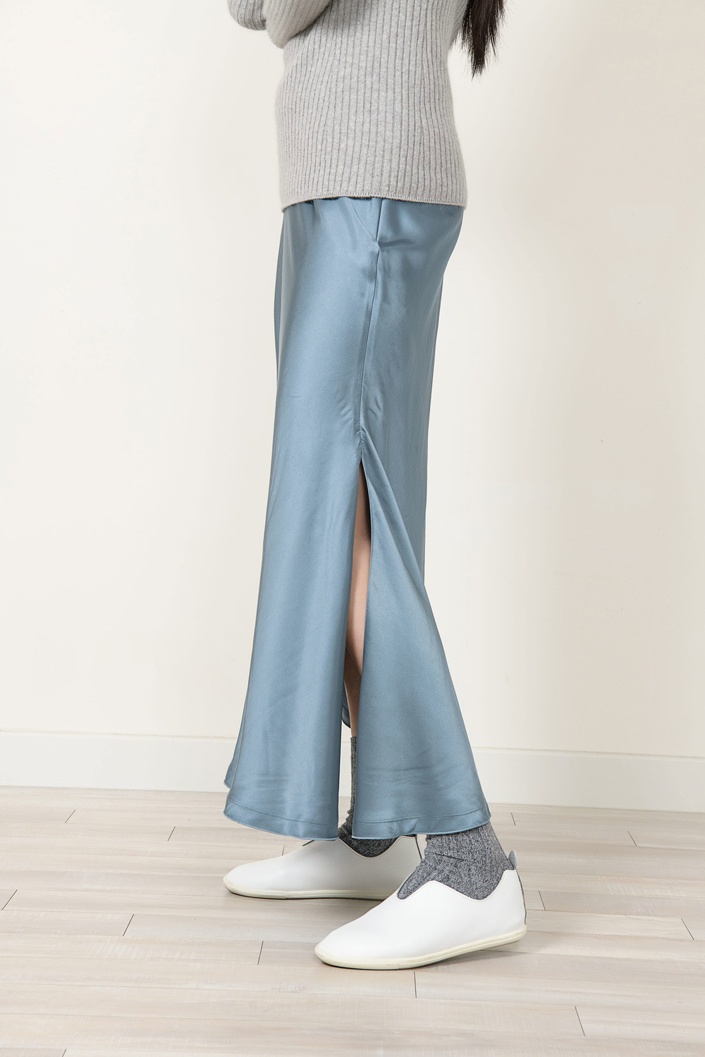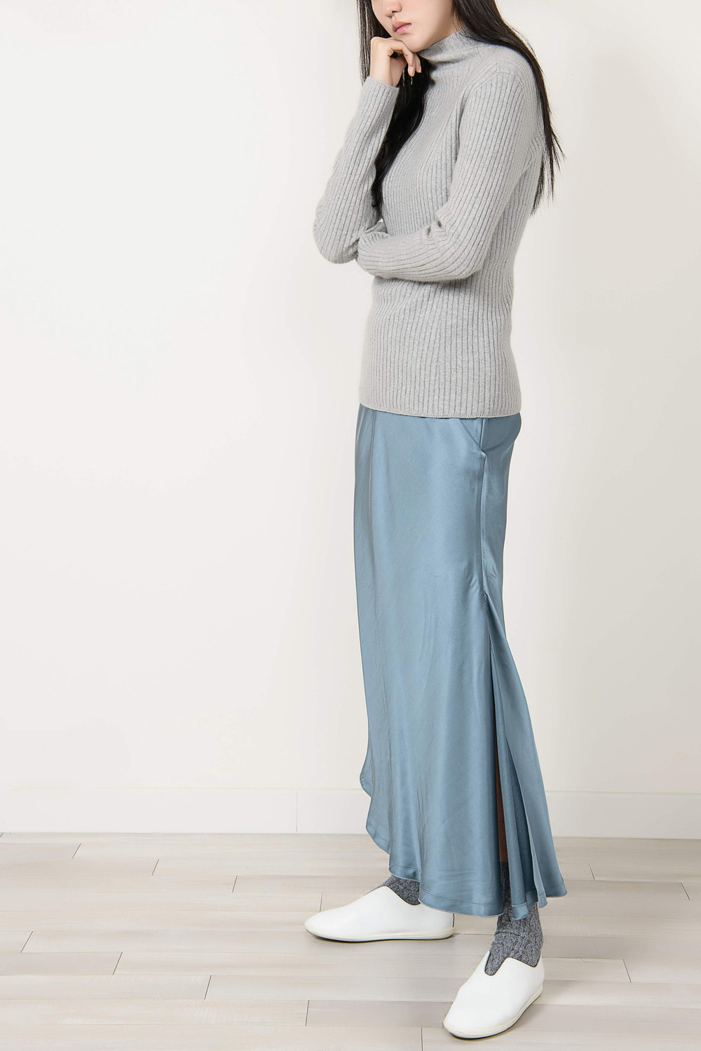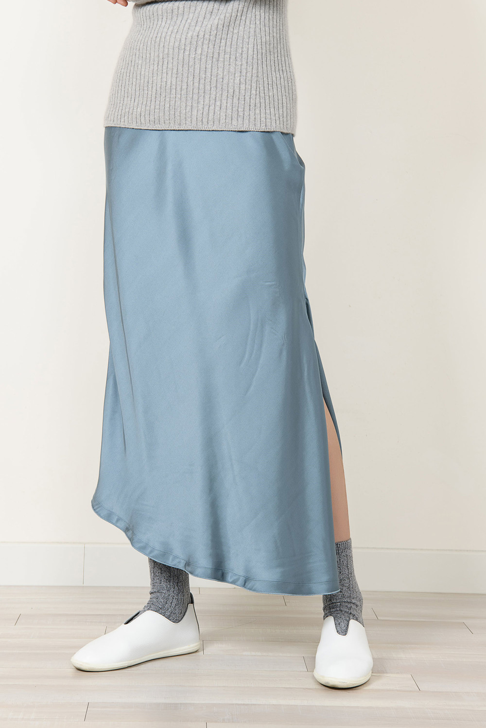 [wasda] UNBALANCE LONG SKIRT BLUE