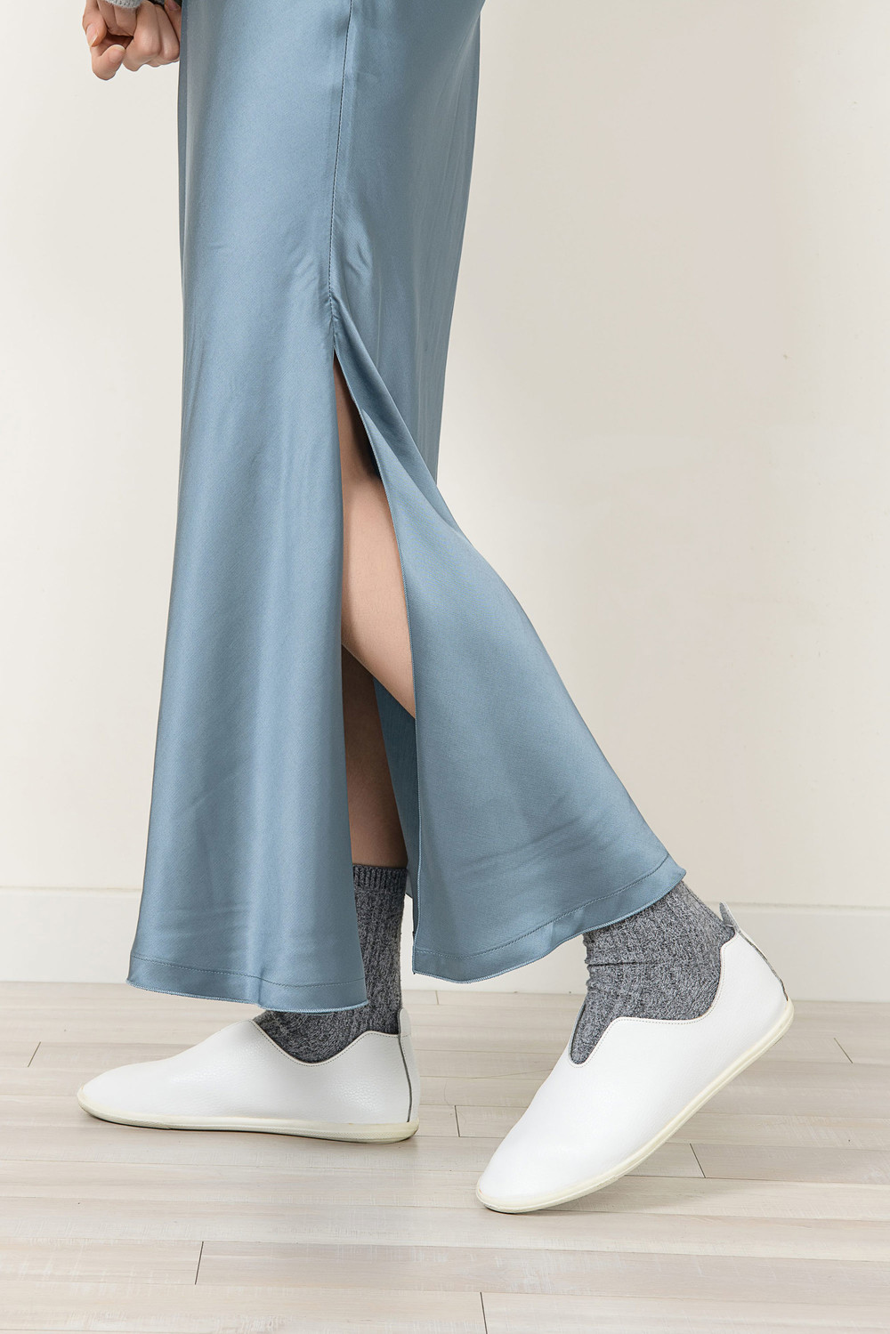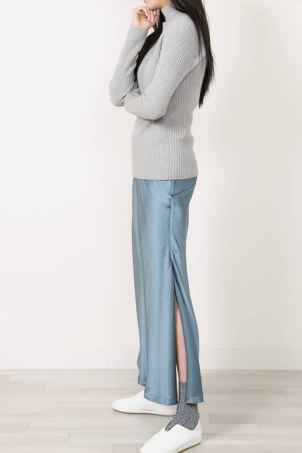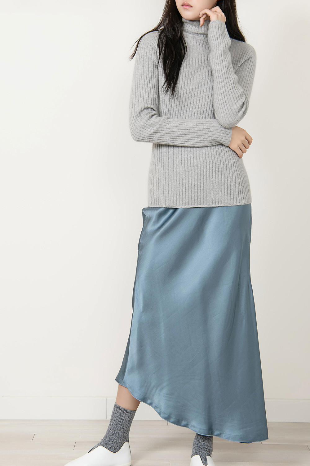 [wasda] UNBALANCE LONG SKIRT BLUE