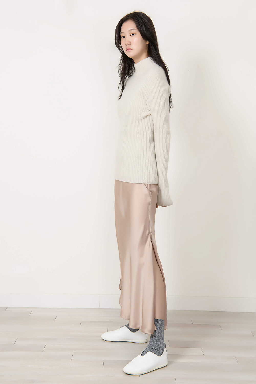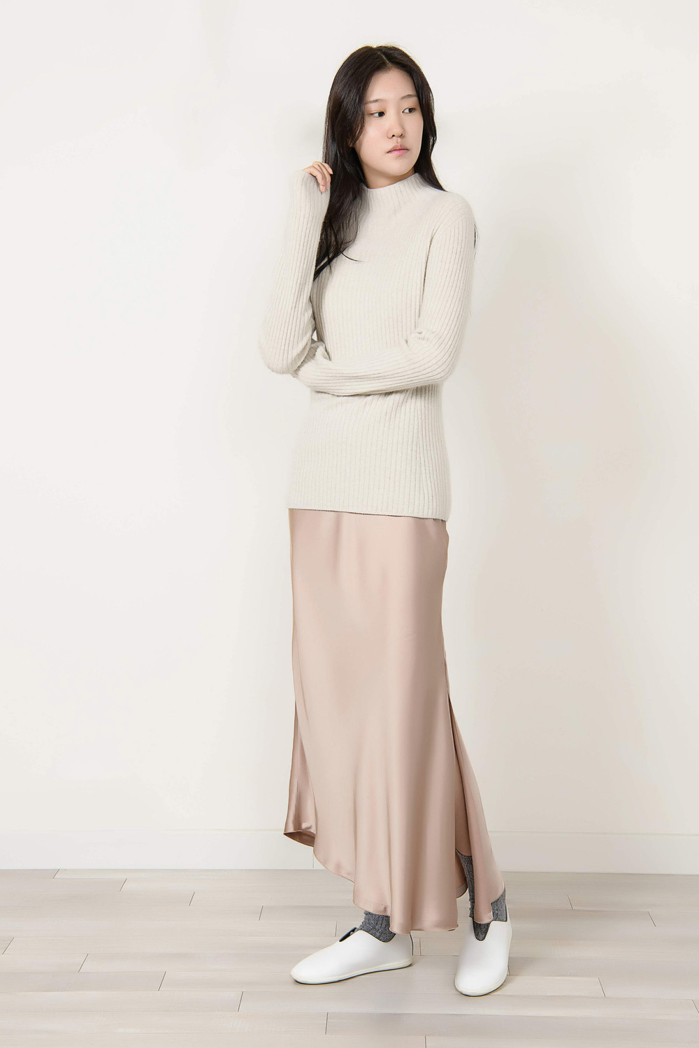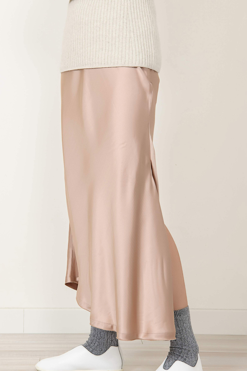 [wasda] UNBALANCE LONG SKIRT BEIGE