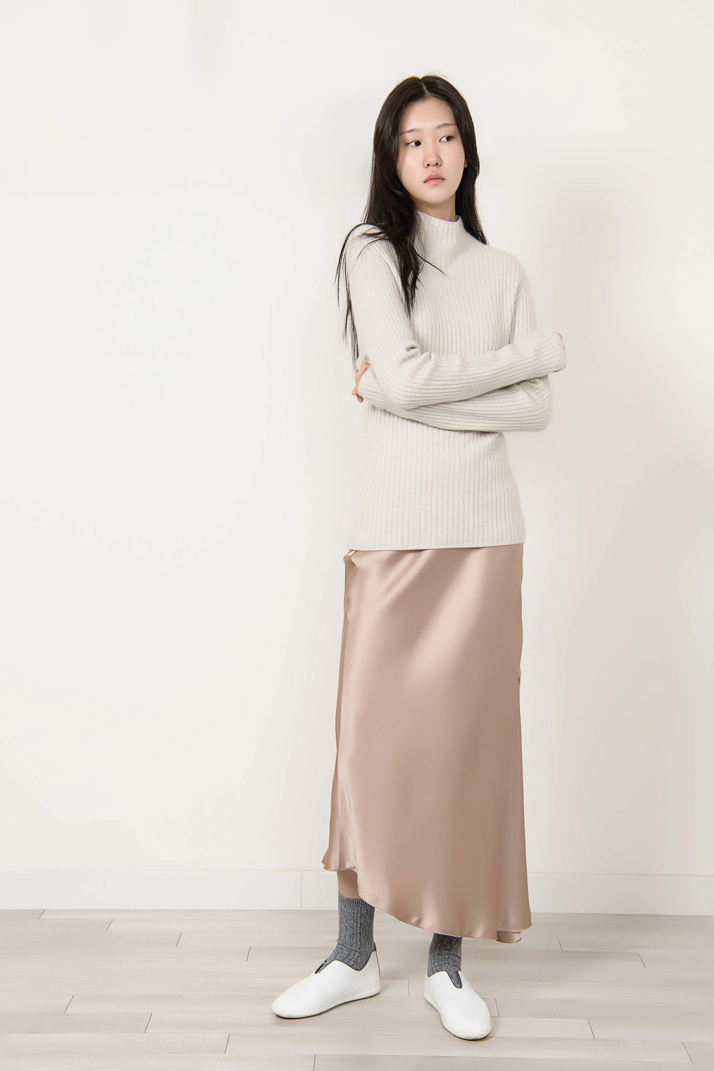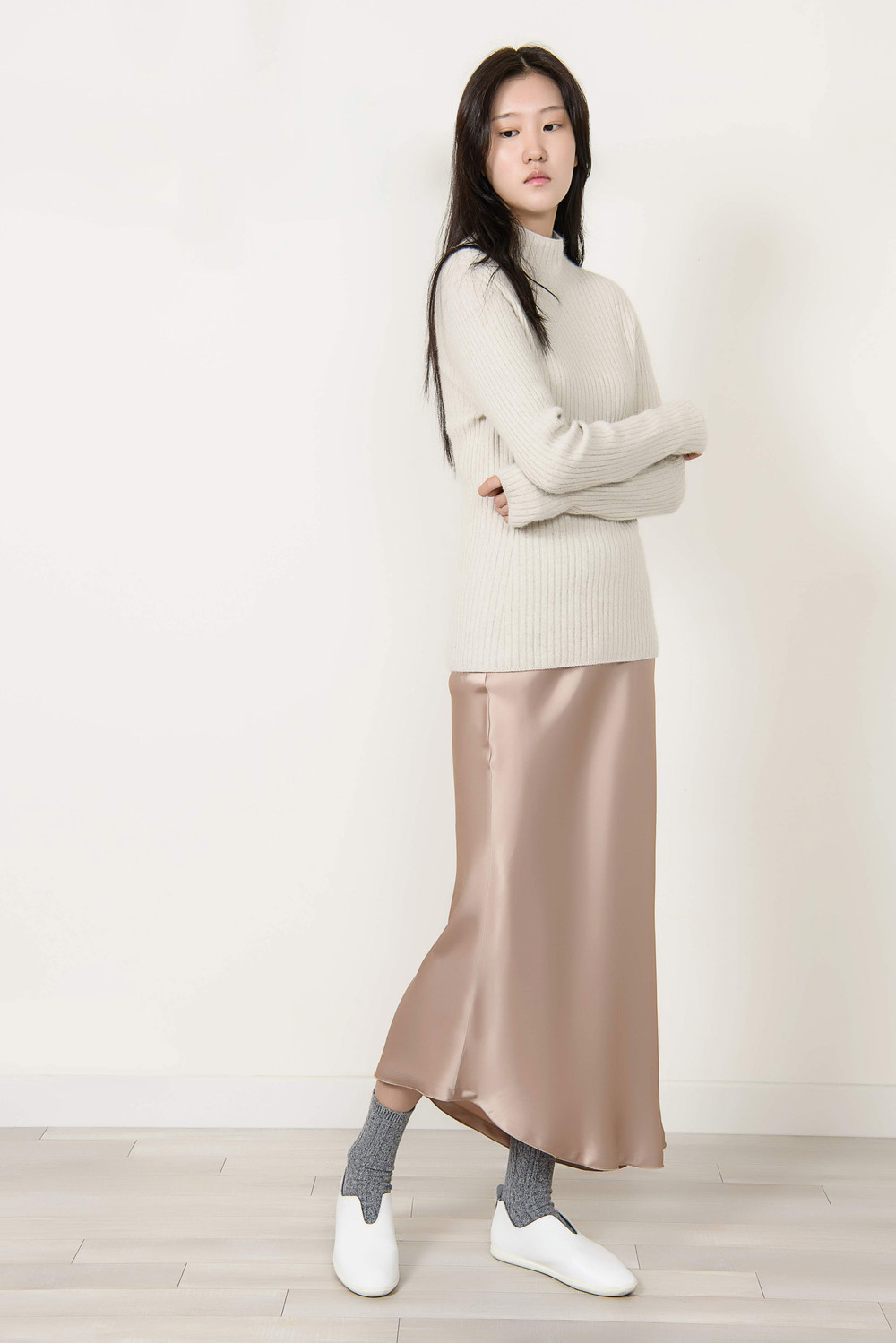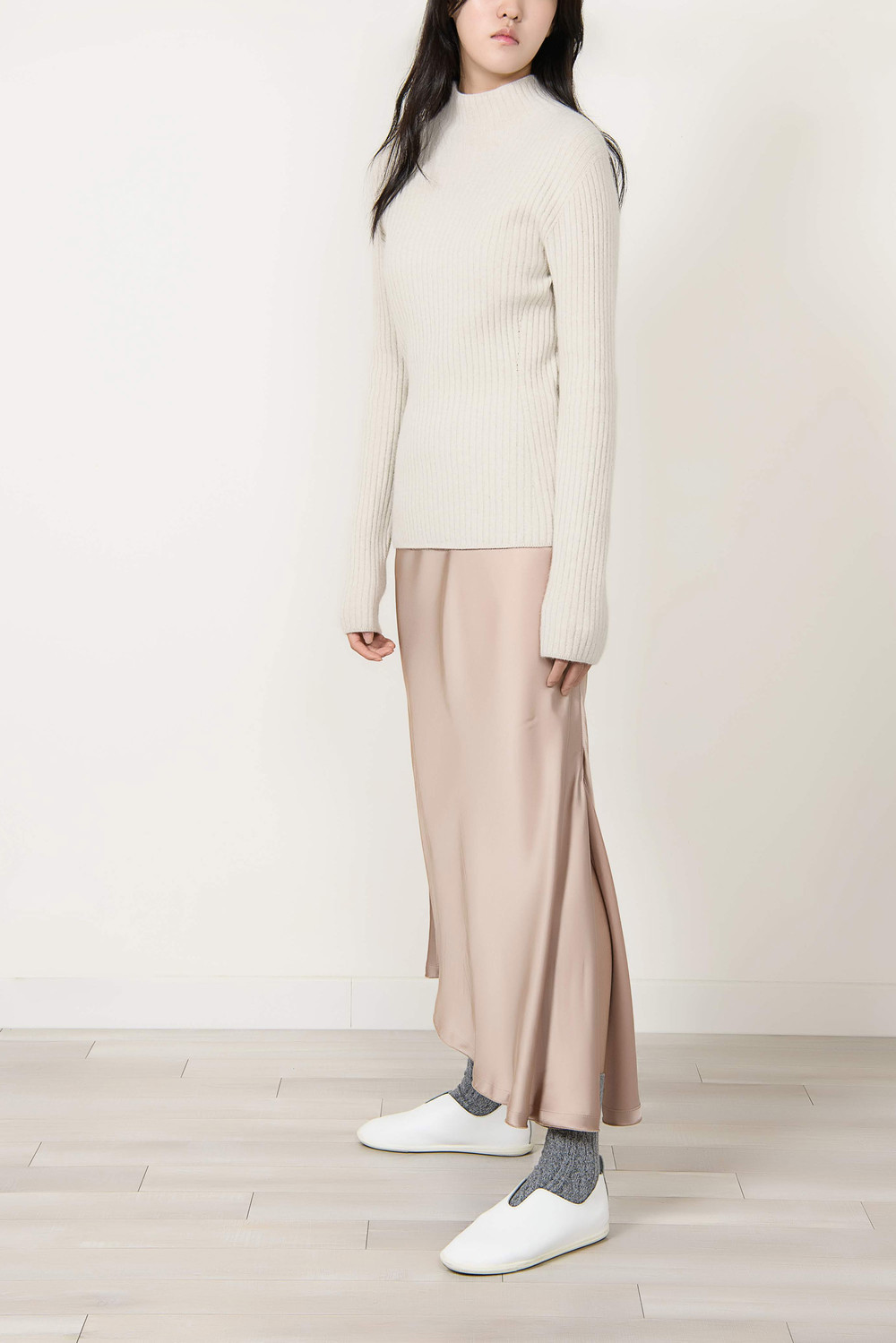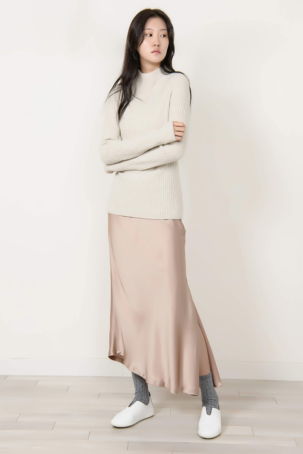 [wasda] UNBALANCE LONG SKIRT BEIGE
