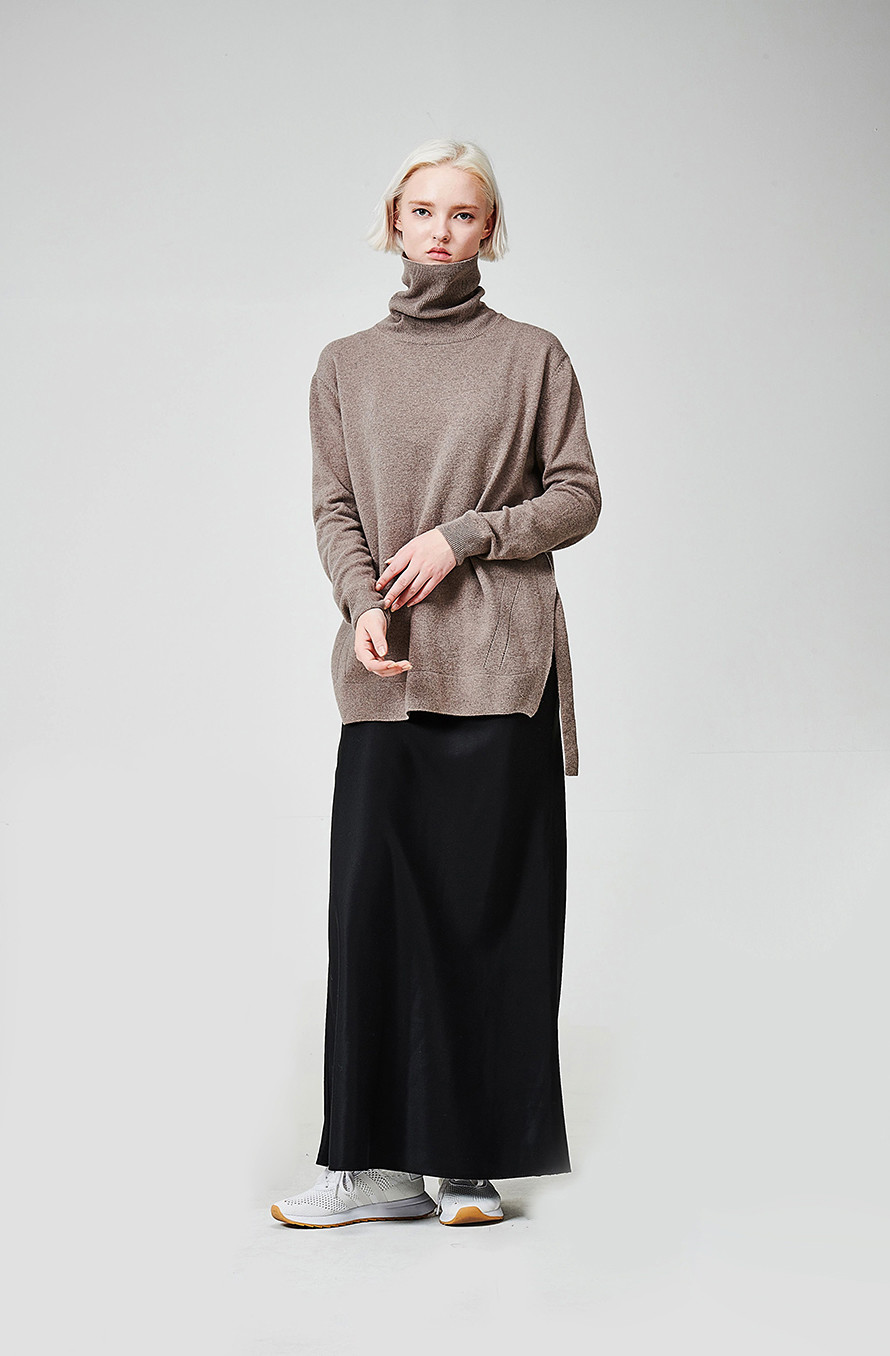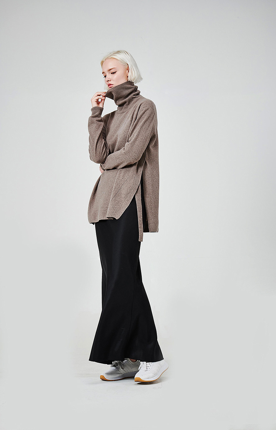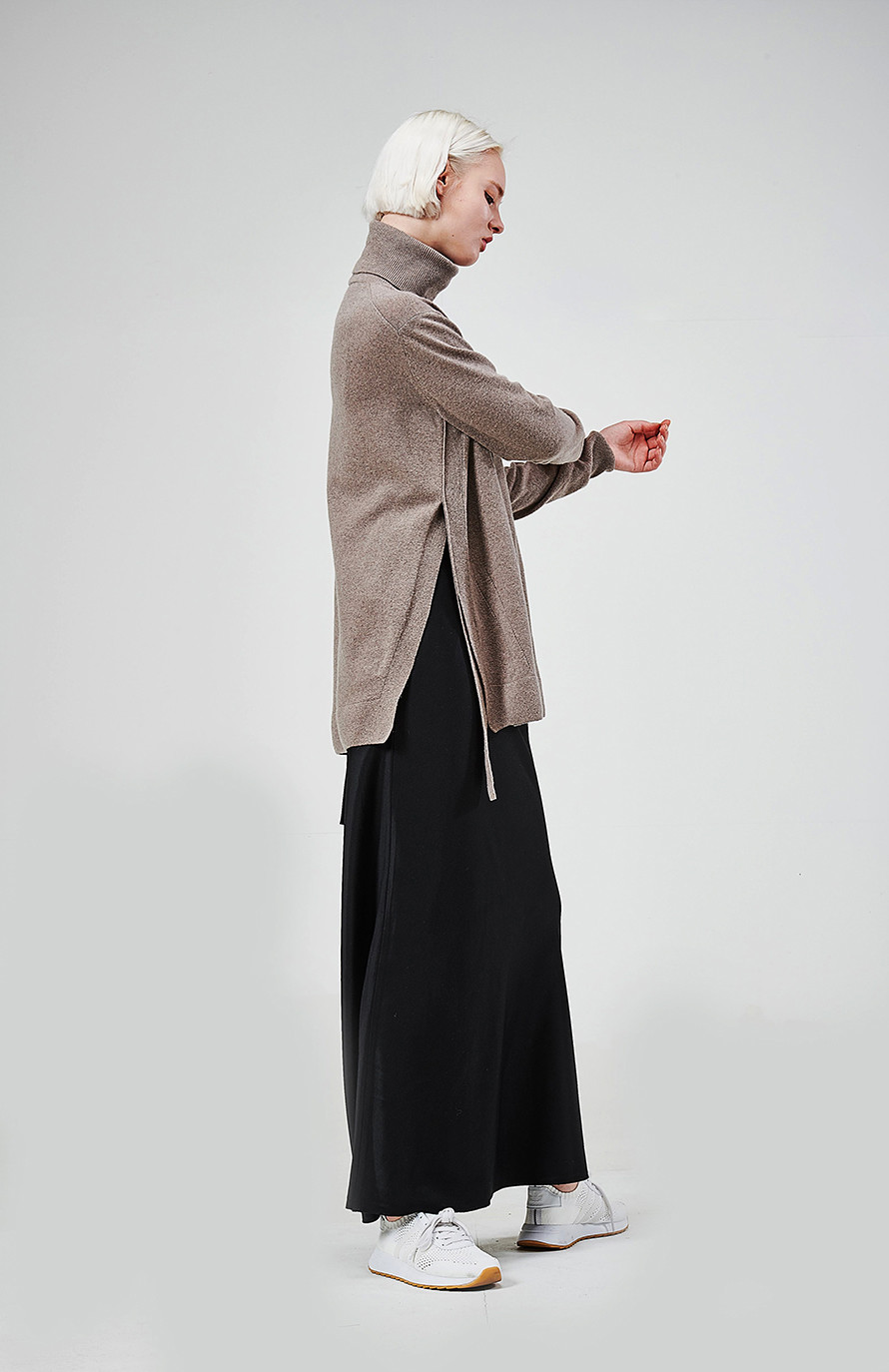 [wasda] SIDE SLIT CASHMERE TURTLE KNIT TOP
