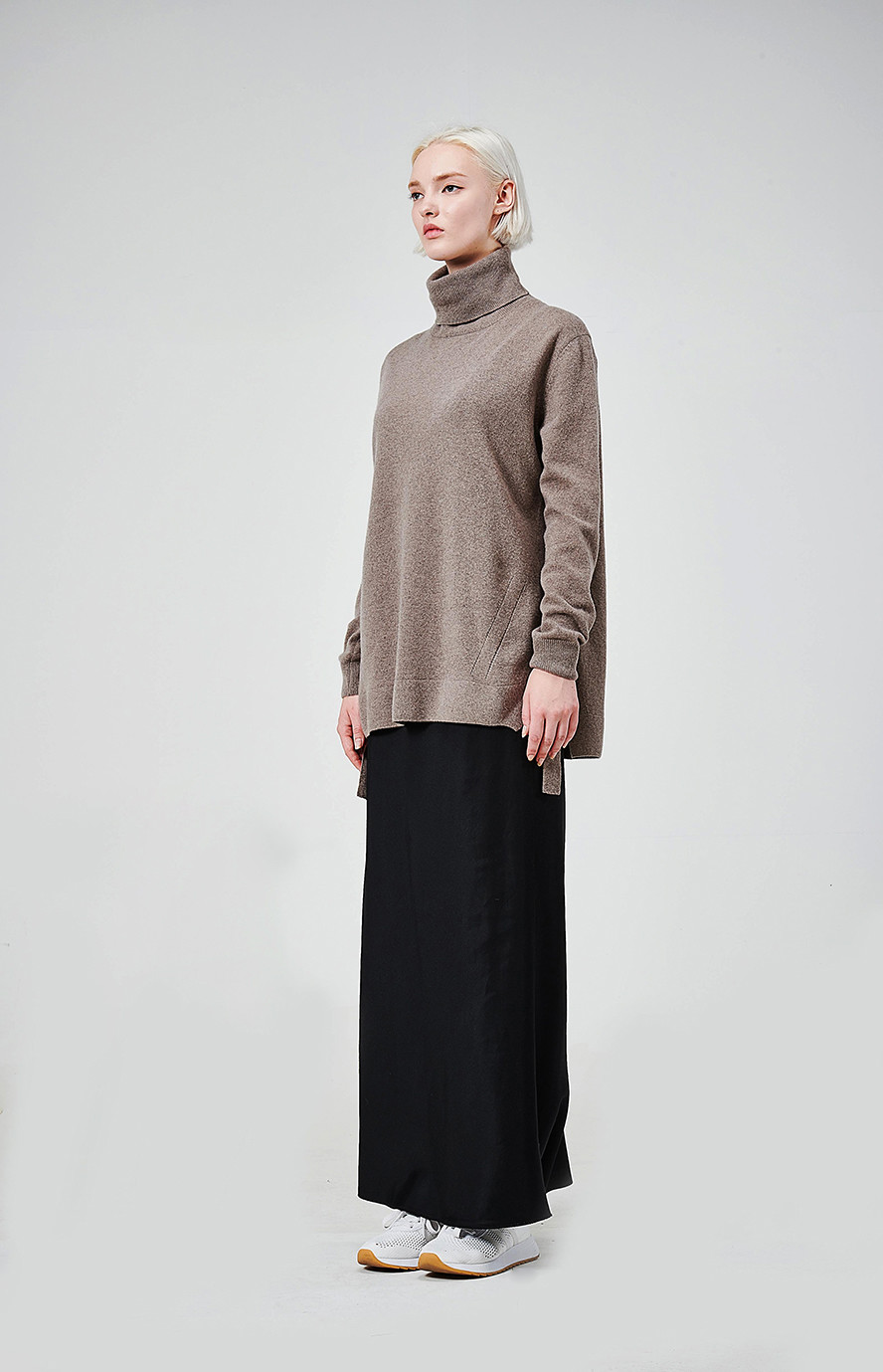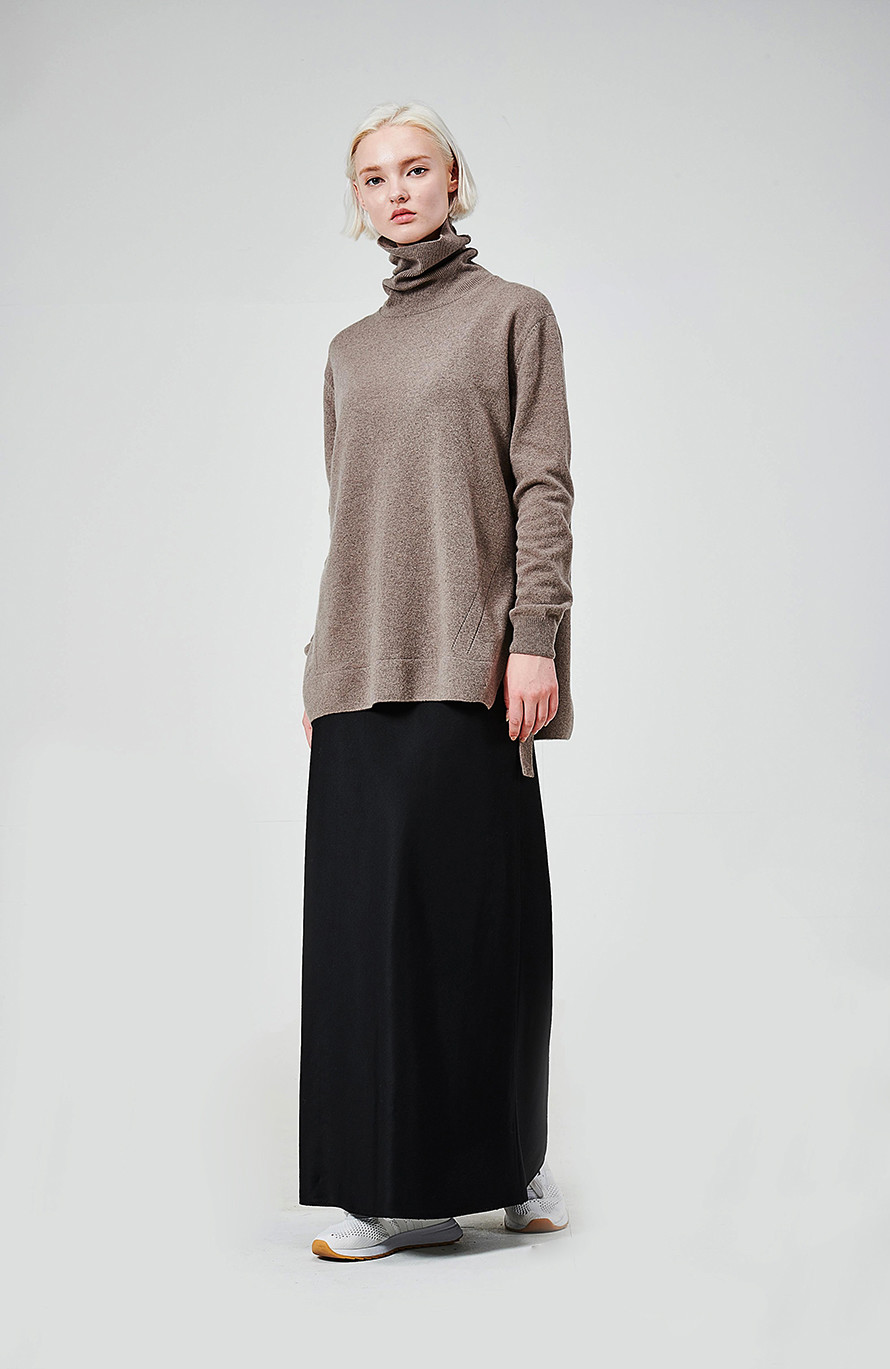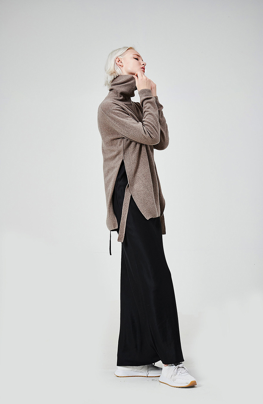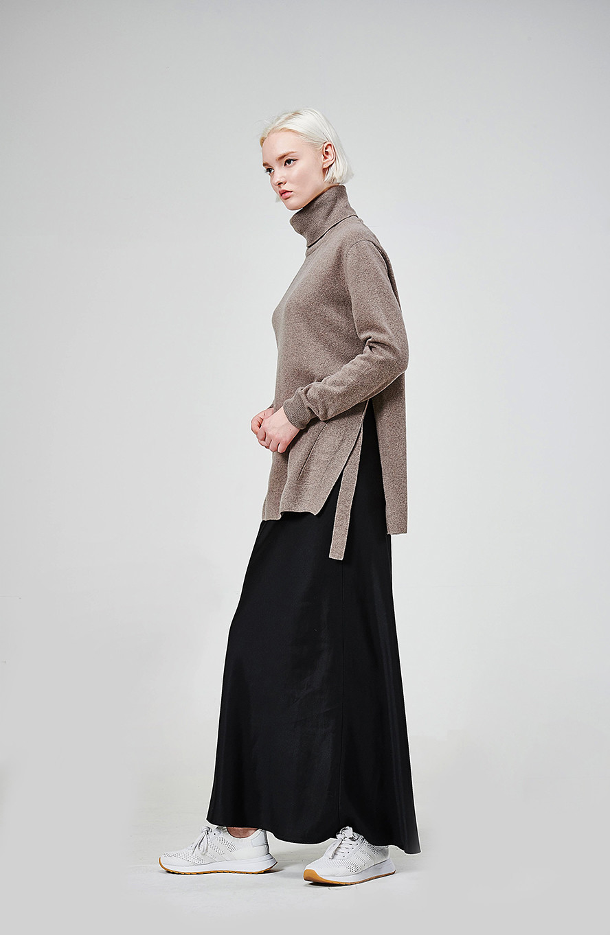 [wasda] SIDE SLIT CASHMERE TURTLE KNIT TOP