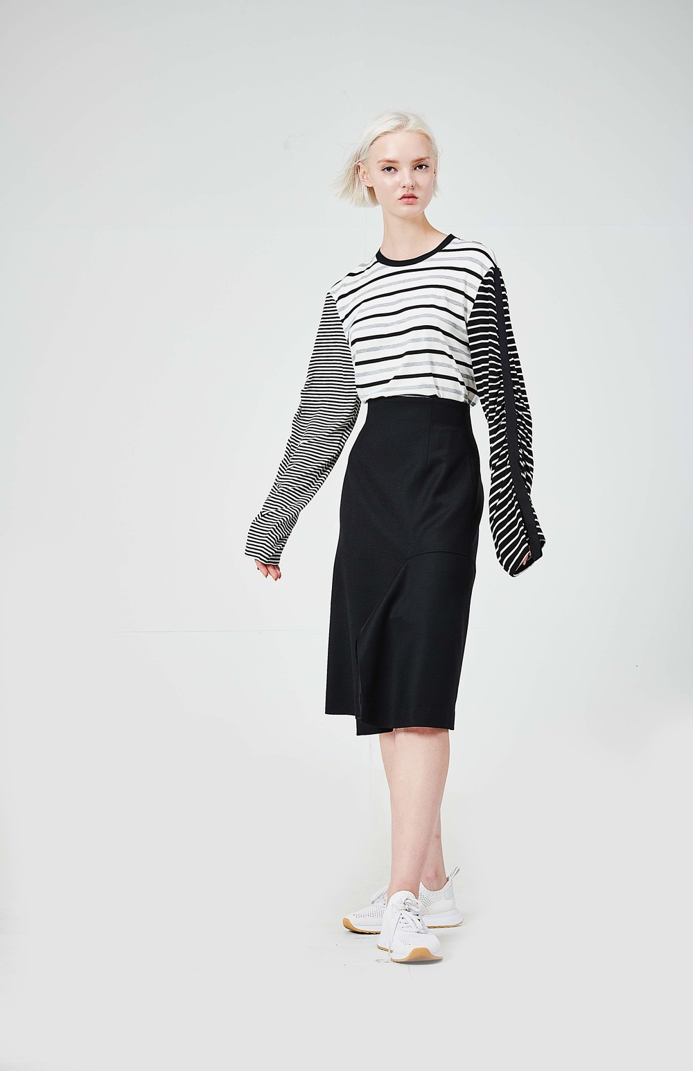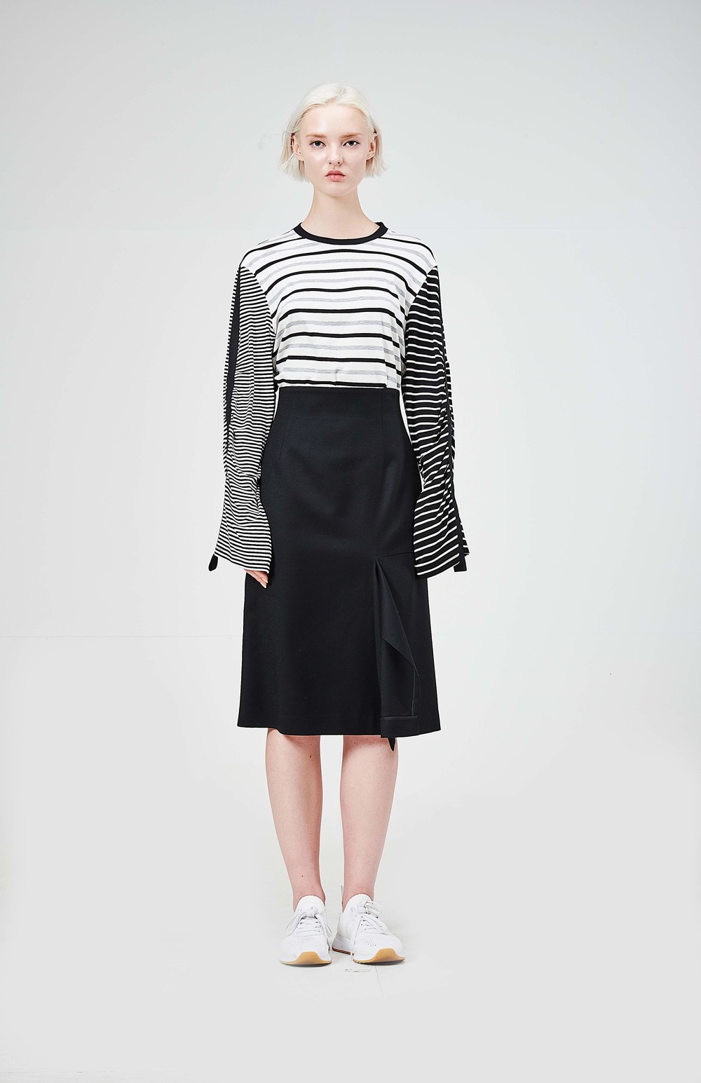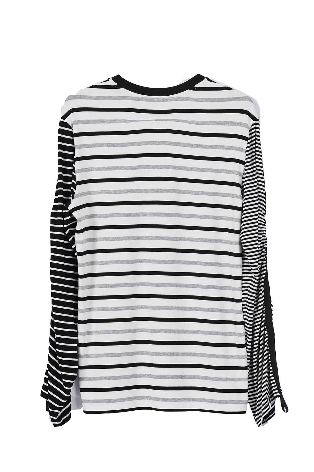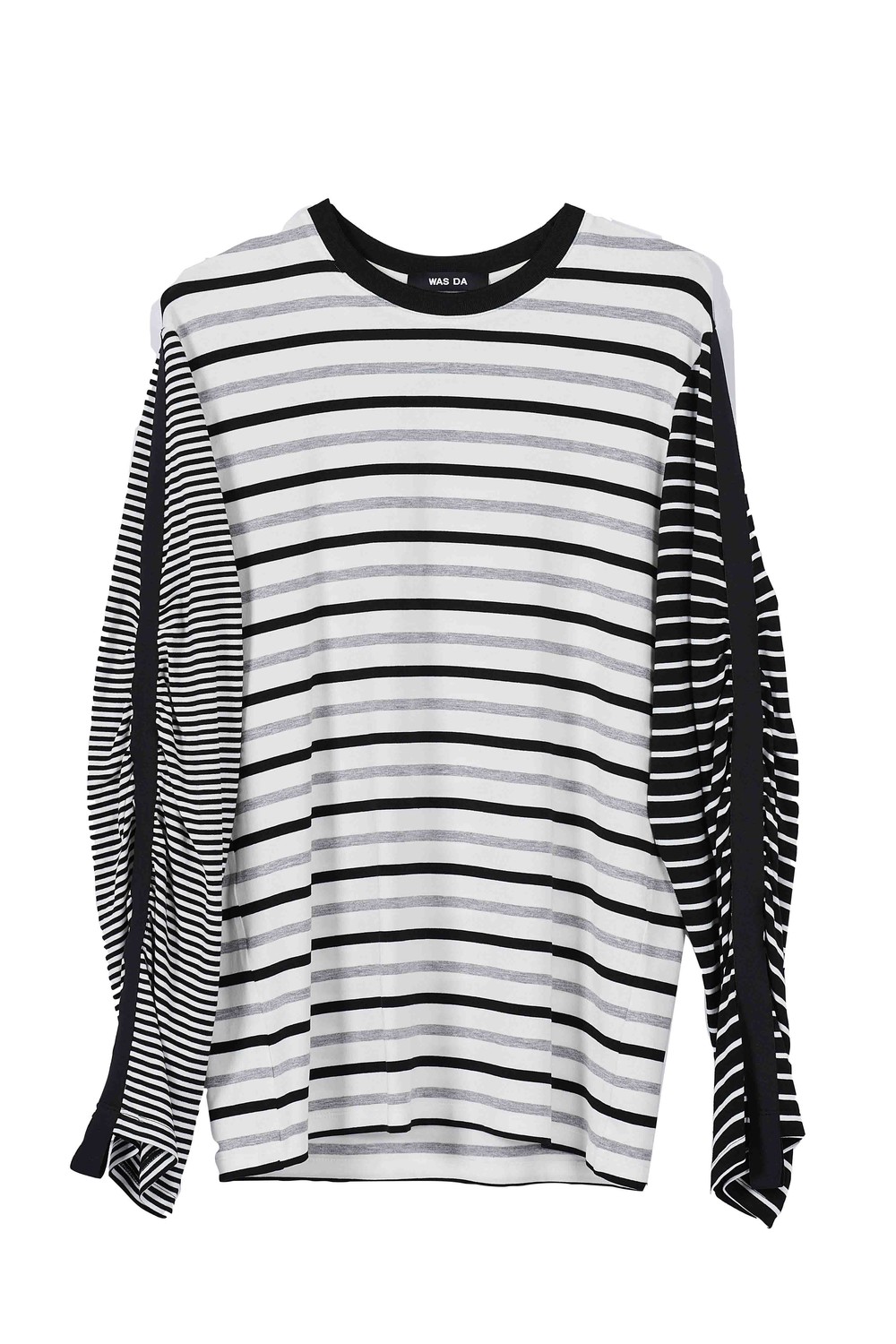 [wasda] MULTI STRIPE SLEEVE SHIRRING T-SHIRT
