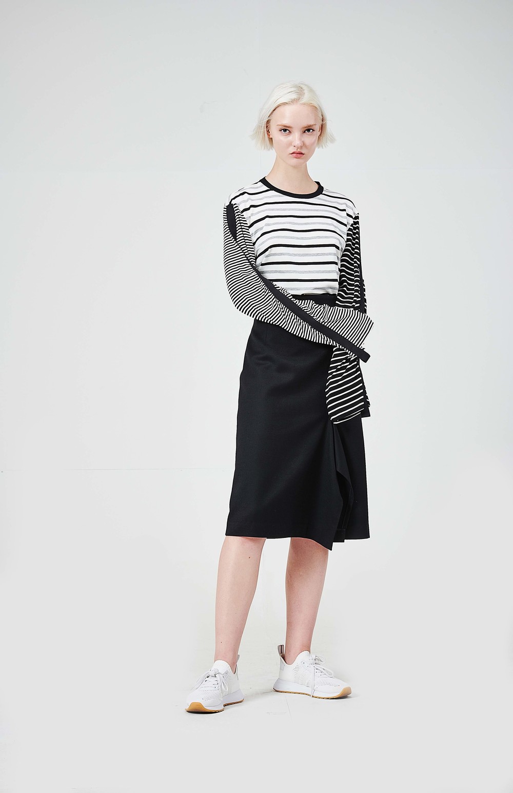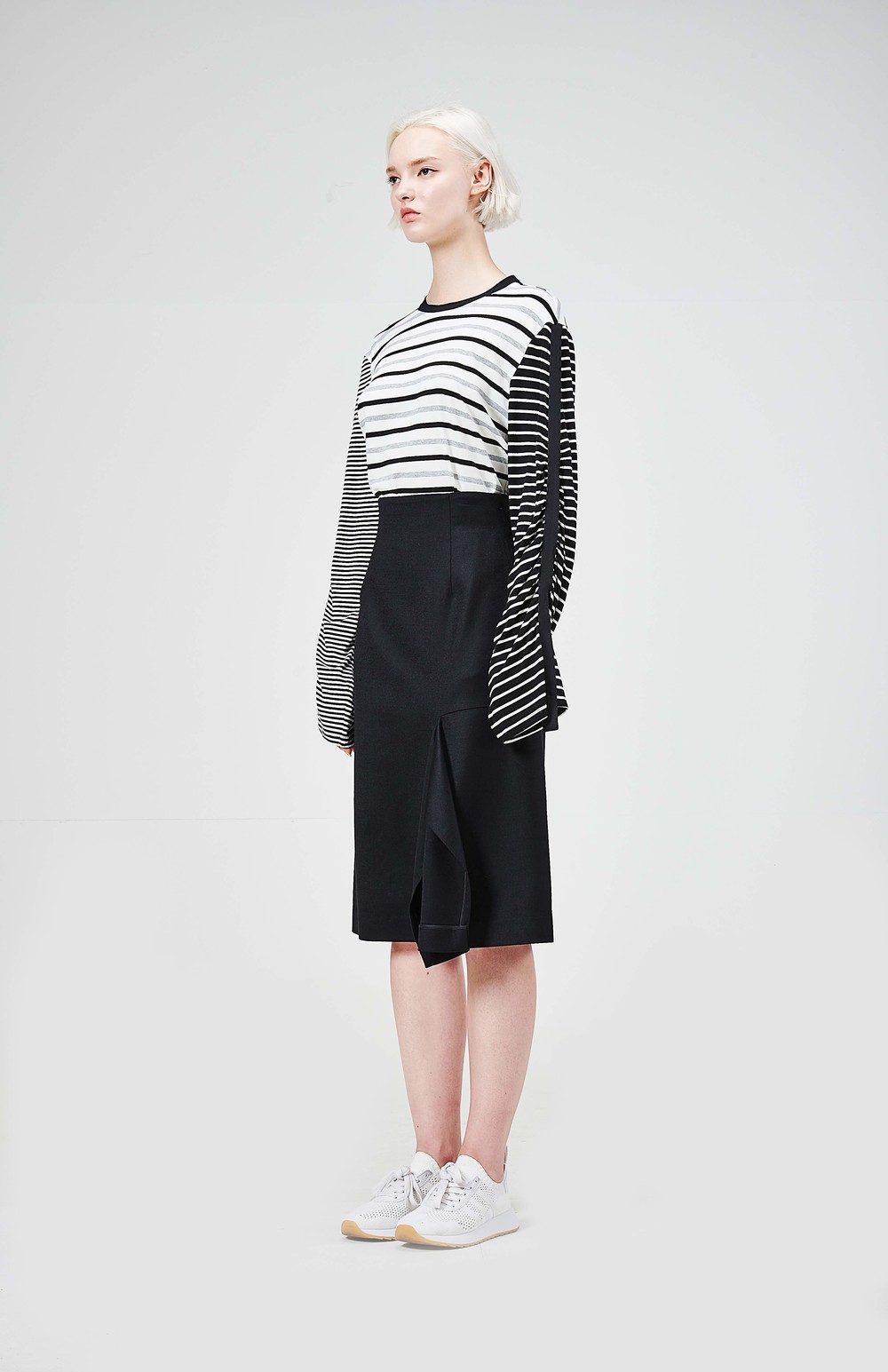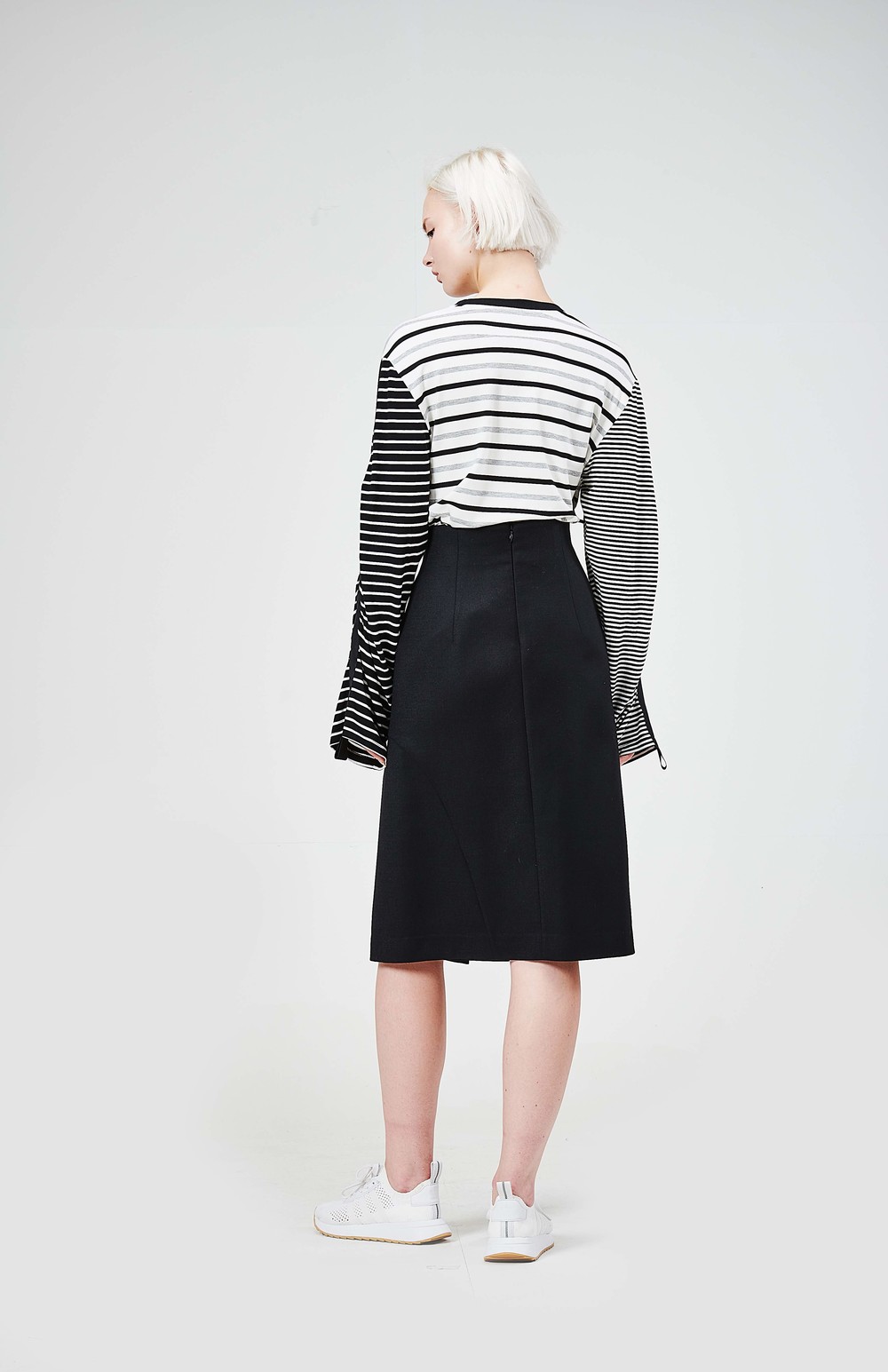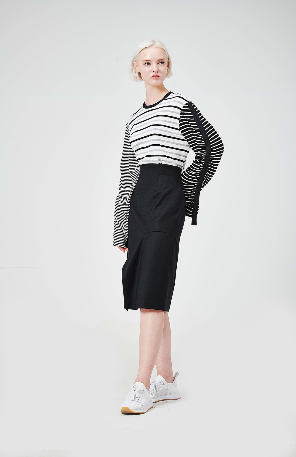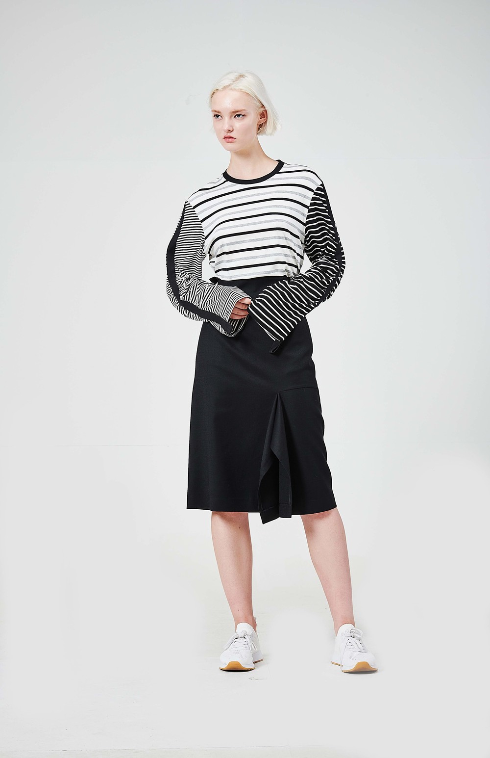 [wasda] MULTI STRIPE SLEEVE SHIRRING T-SHIRT