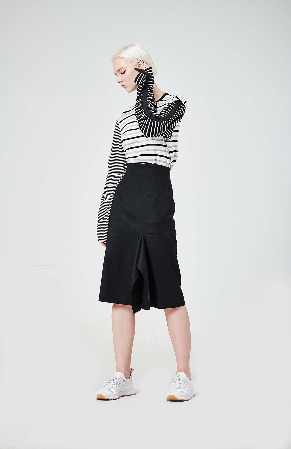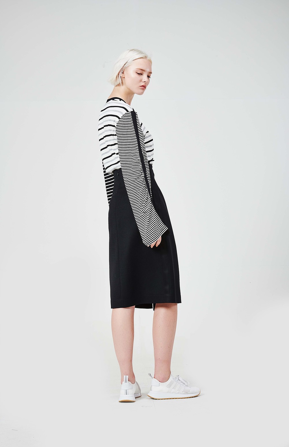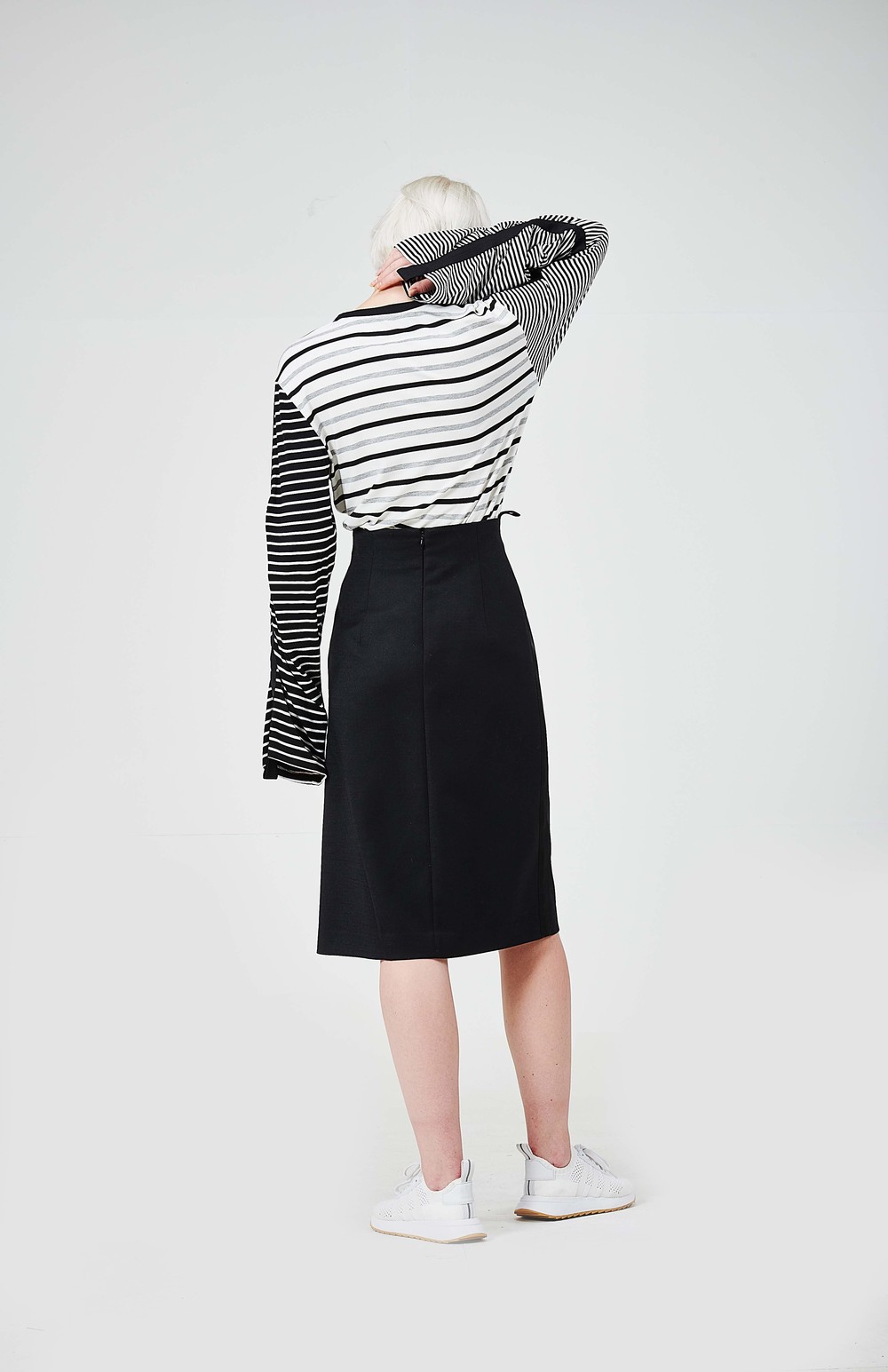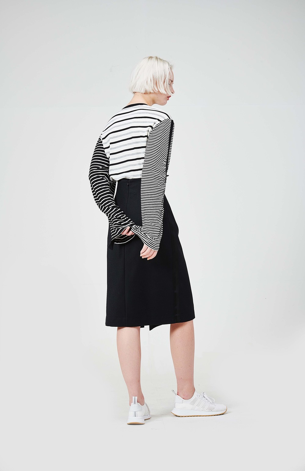 [wasda] MULTI STRIPE SLEEVE SHIRRING T-SHIRT